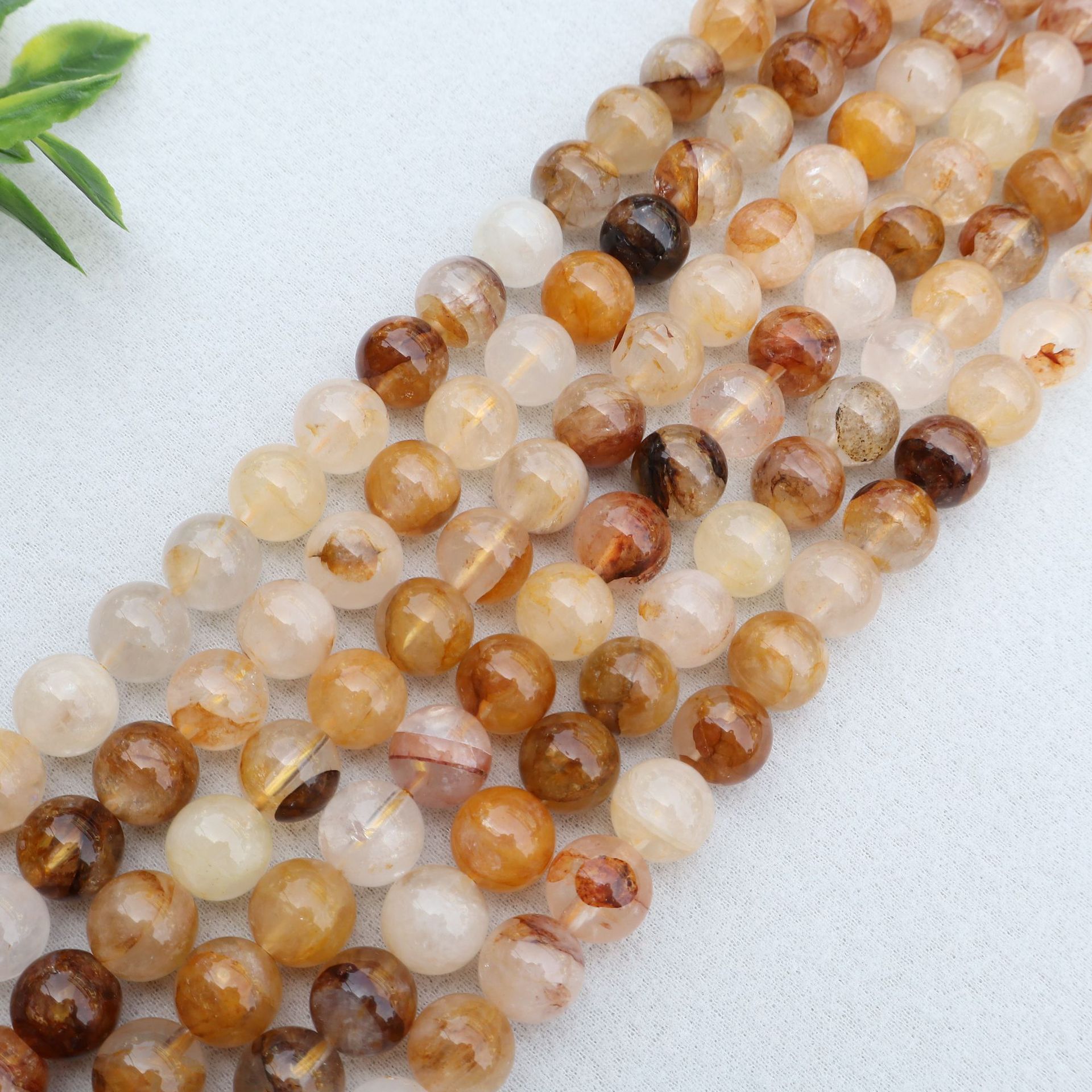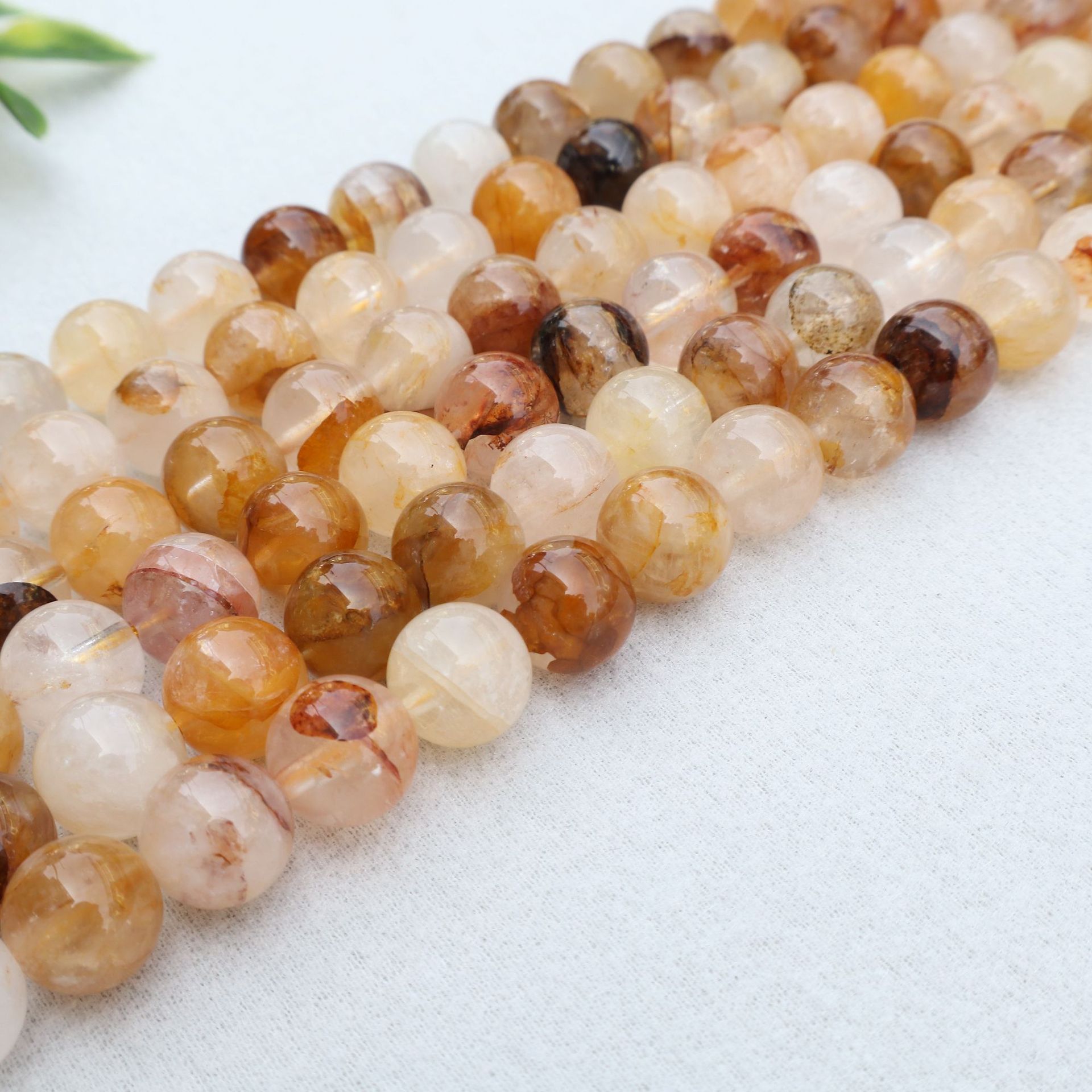 Perles de pierre gemme unique, Le Golden healer quartz, DIY, couleurs mélangées, Longueur:38 cm, Vendu par brin