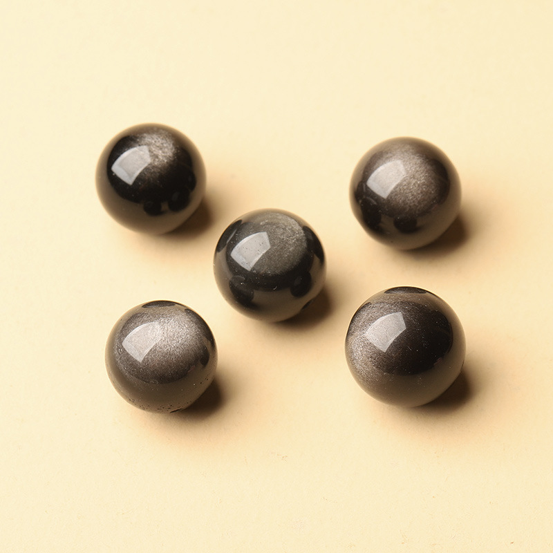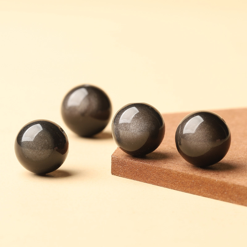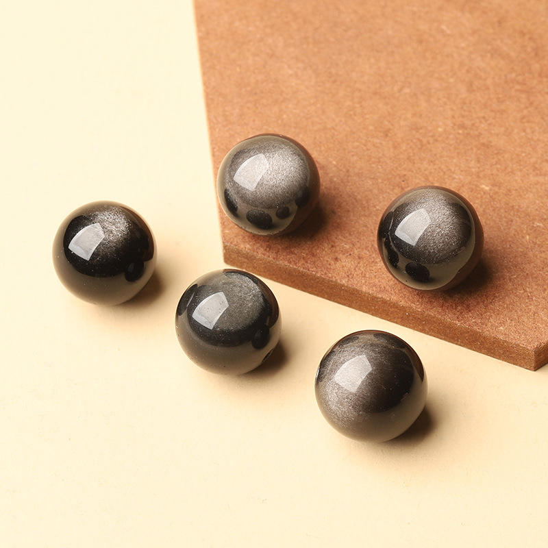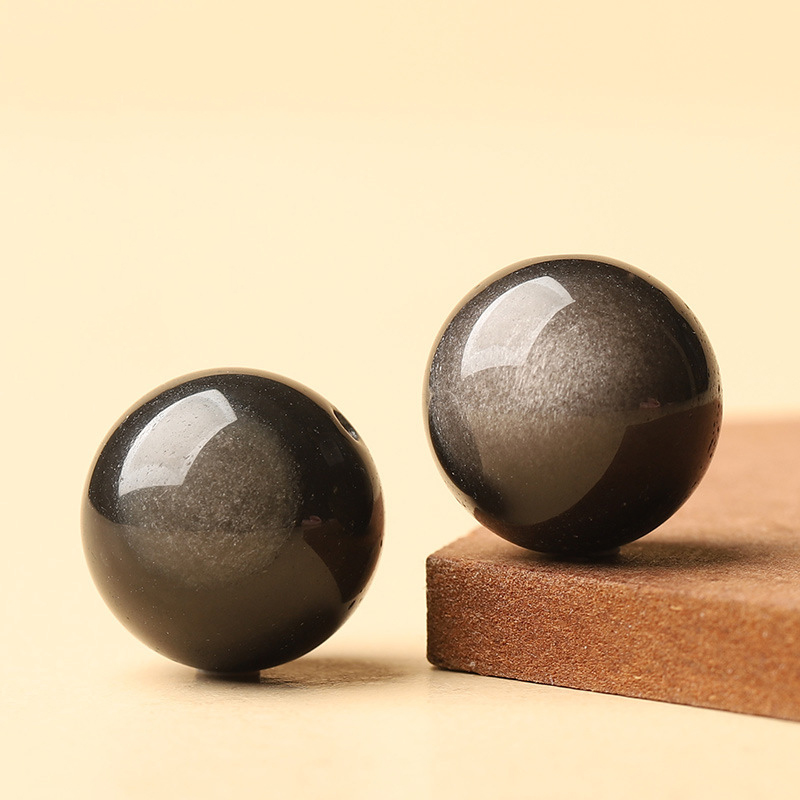 Perles de pierre gemme unique, Argent-Obsidienne, Rond, DIY & normes différentes pour le choix, Vendu par PC