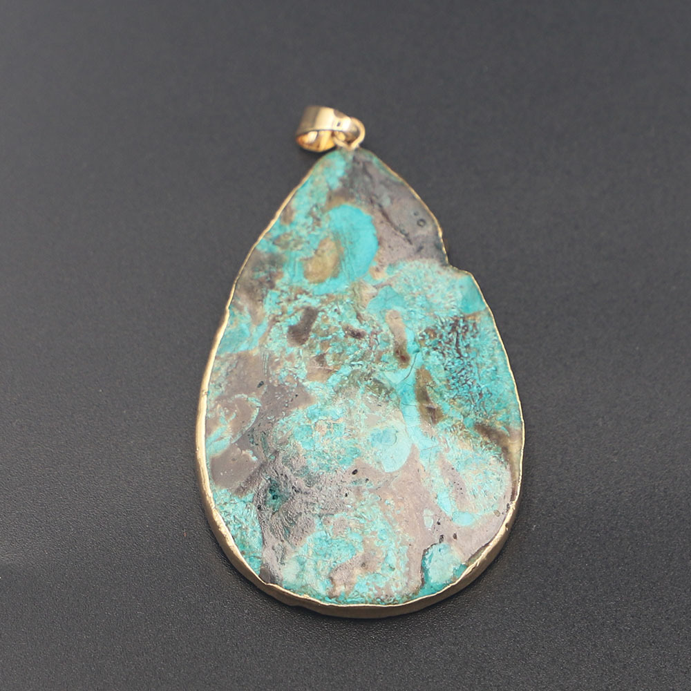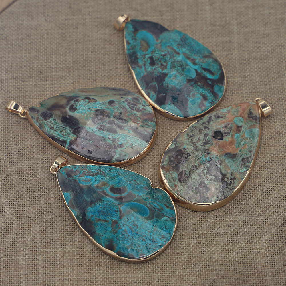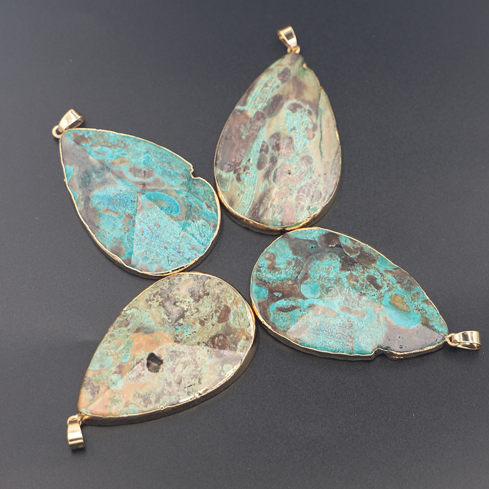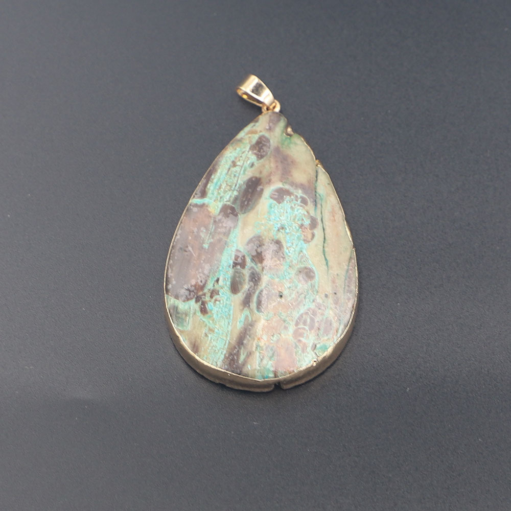 Perles de pierre gemme unique, Jaspe d'océan, larme, Placage de couleur d'or, DIY, plus de couleurs à choisir, 56x37x8mm, Vendu par PC