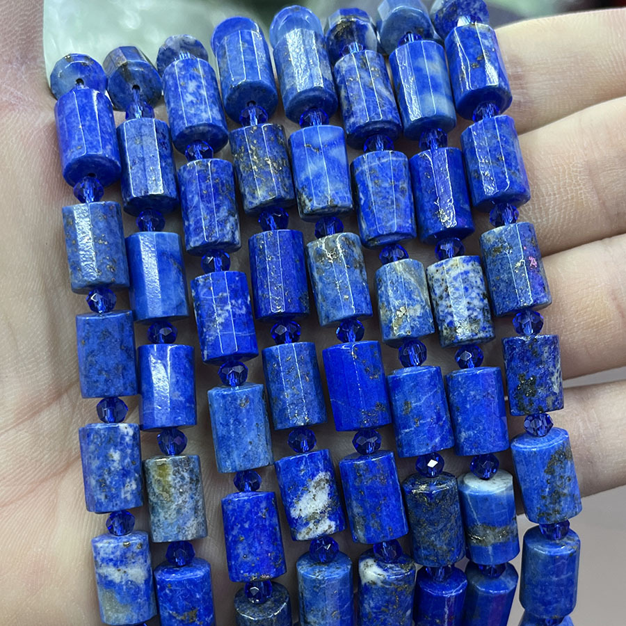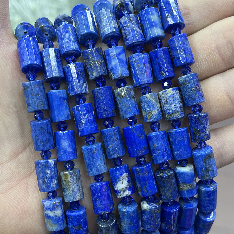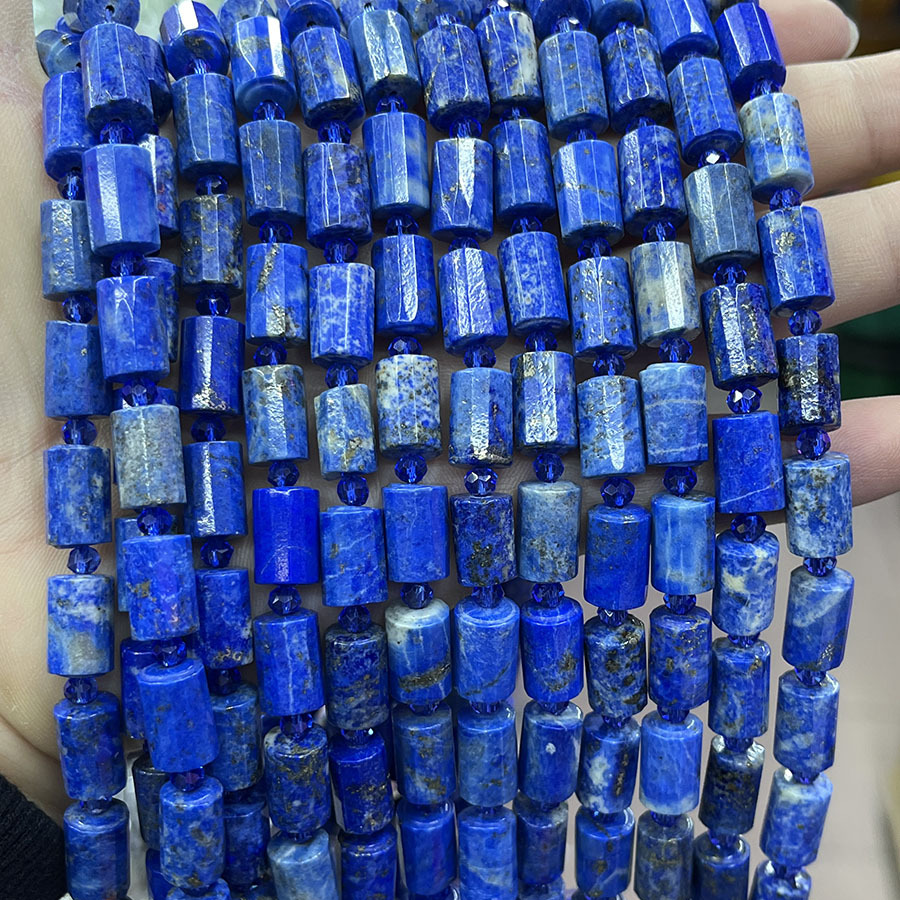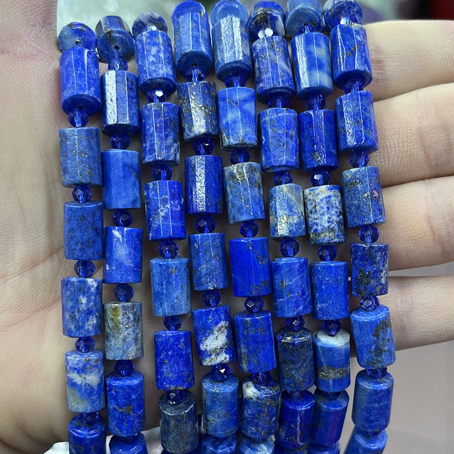Perles de pierre lasurite naturelles, Lapis lazuli, pilier, DIY, bleu, 8x12mm, Longueur:38 cm, Vendu par brin