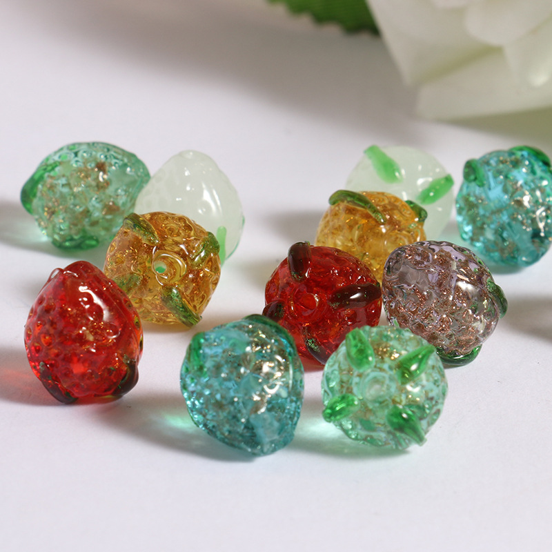 Perles de verre végétales, chalumeau, fraise, DIY, plus de couleurs à choisir, 12mm, Trou:Environ 2mm, Vendu par PC
