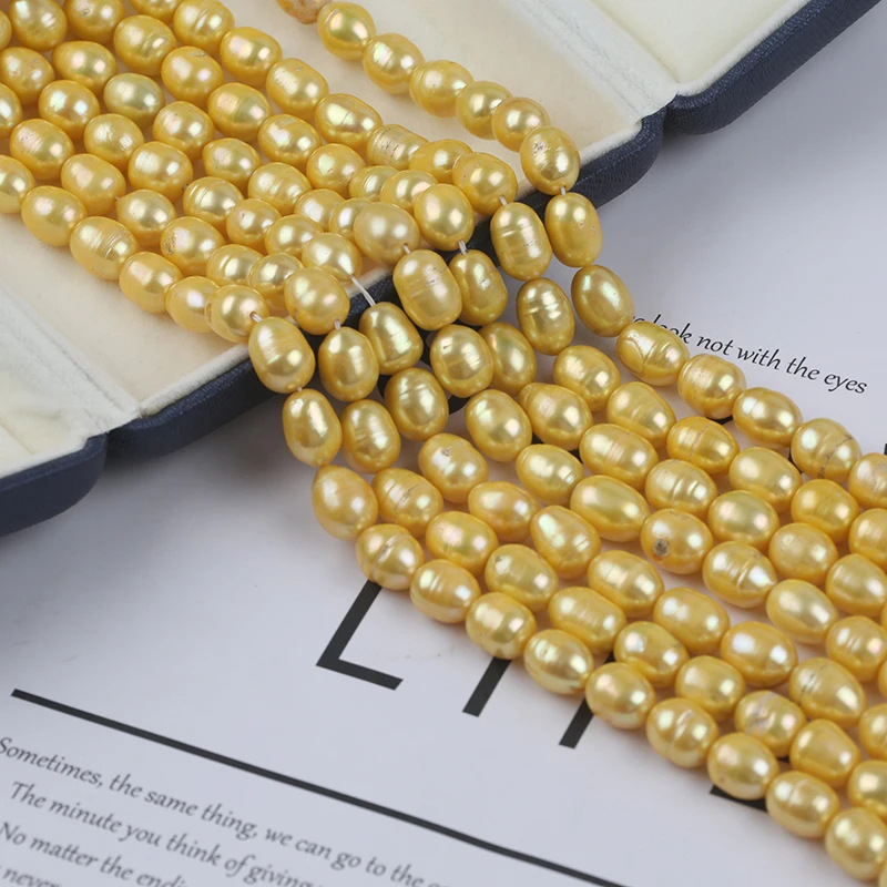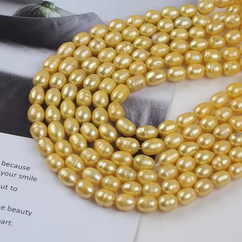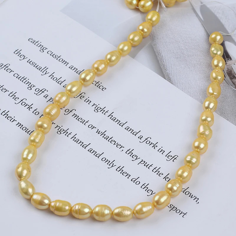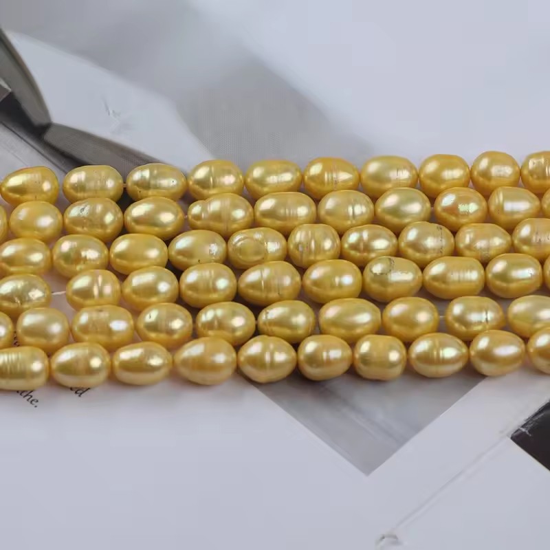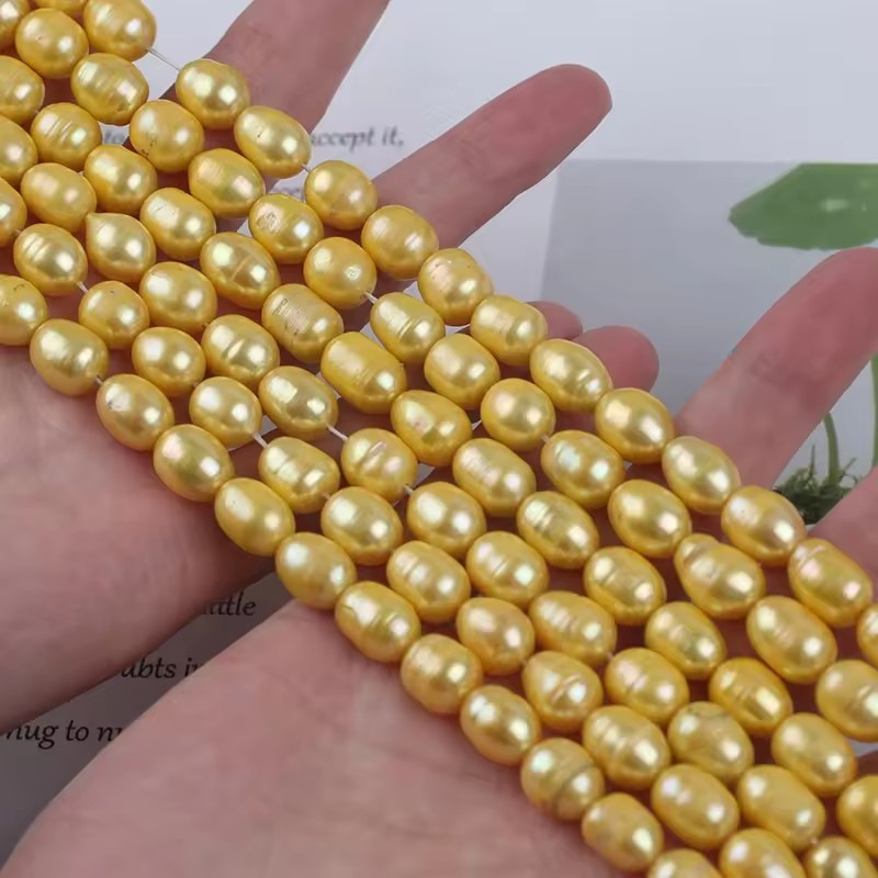 Perles d'eau douce de culture de riz, perle d'eau douce cultivée, DIY, doré, about:8-9mm, Longueur:Environ 38 cm, Vendu par brin