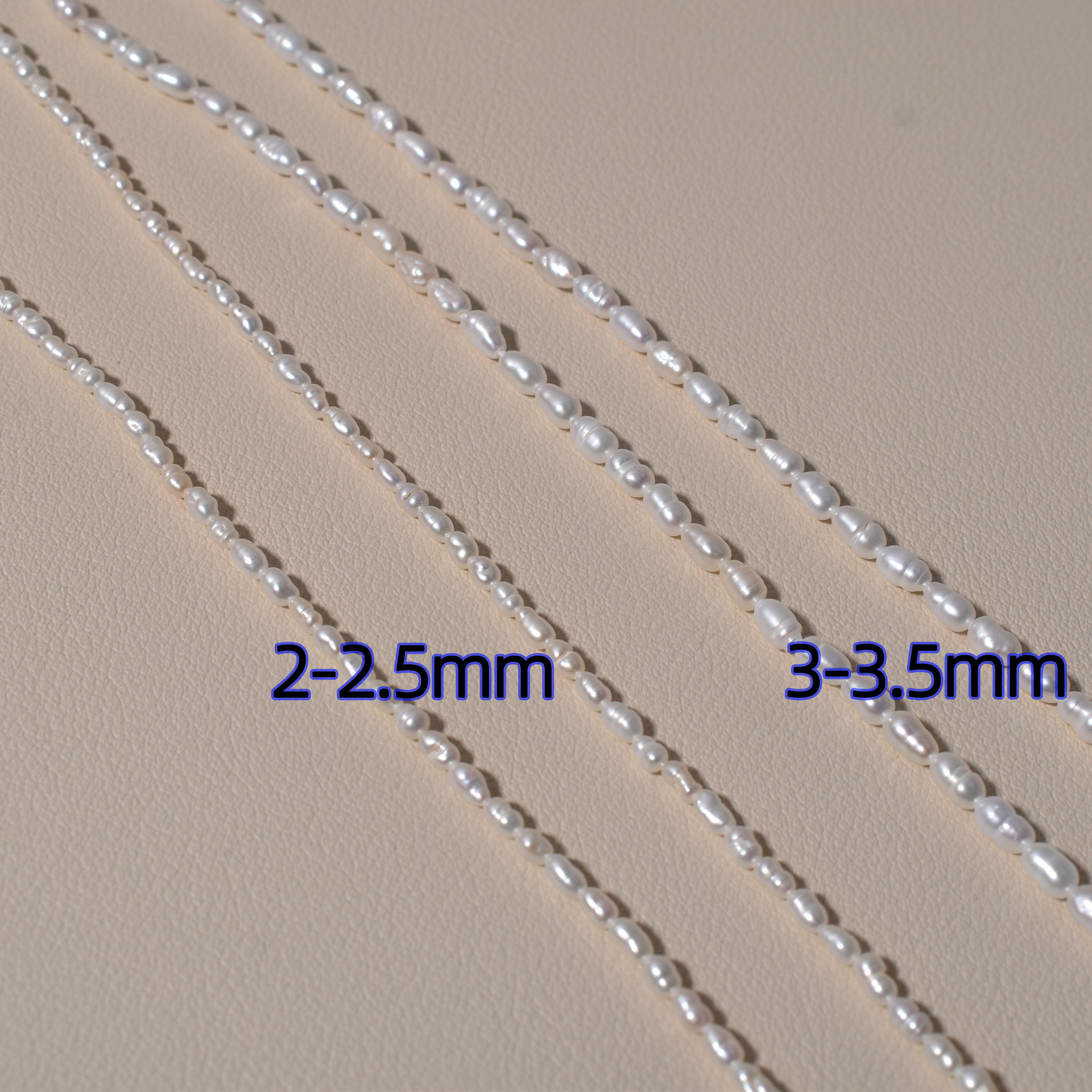 Perles d'eau douce de culture de riz, perle d'eau douce cultivée, naturel, plus de couleurs à choisir, grade A, 2-3mm Environ 0.8mm Vendu par brin