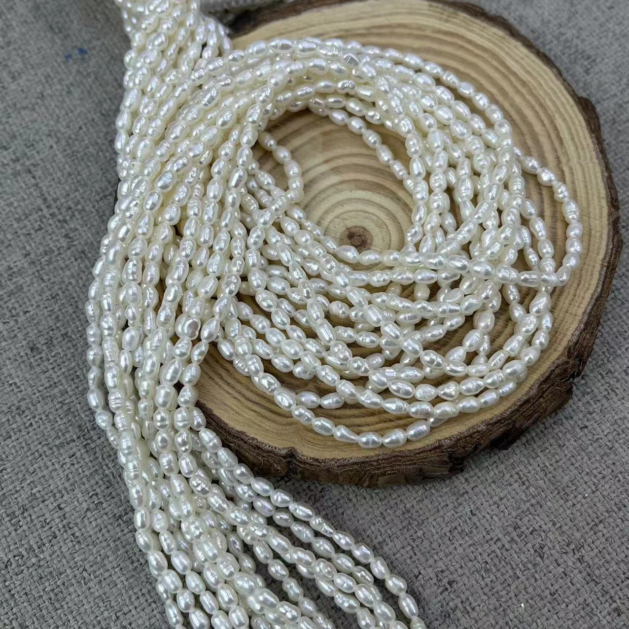 Perles d'eau douce de culture de riz, perle d'eau douce cultivée, DIY, blanc, about:2-3mm, Environ 82PC/brin, Vendu par brin