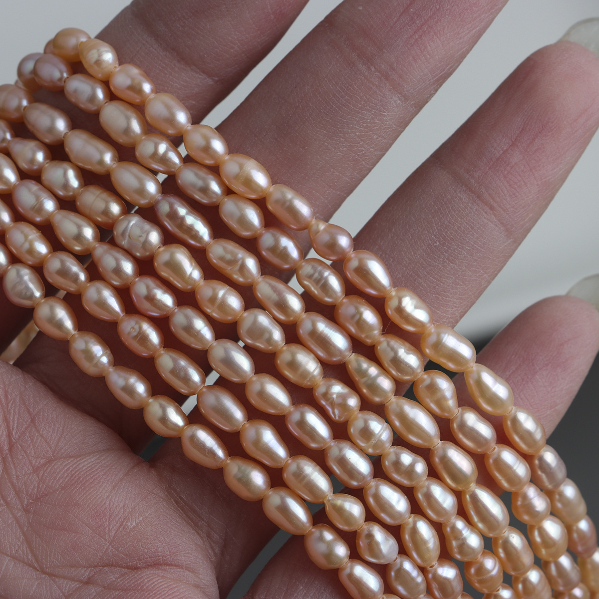 天然桔色4-5mm异形米珠 一条