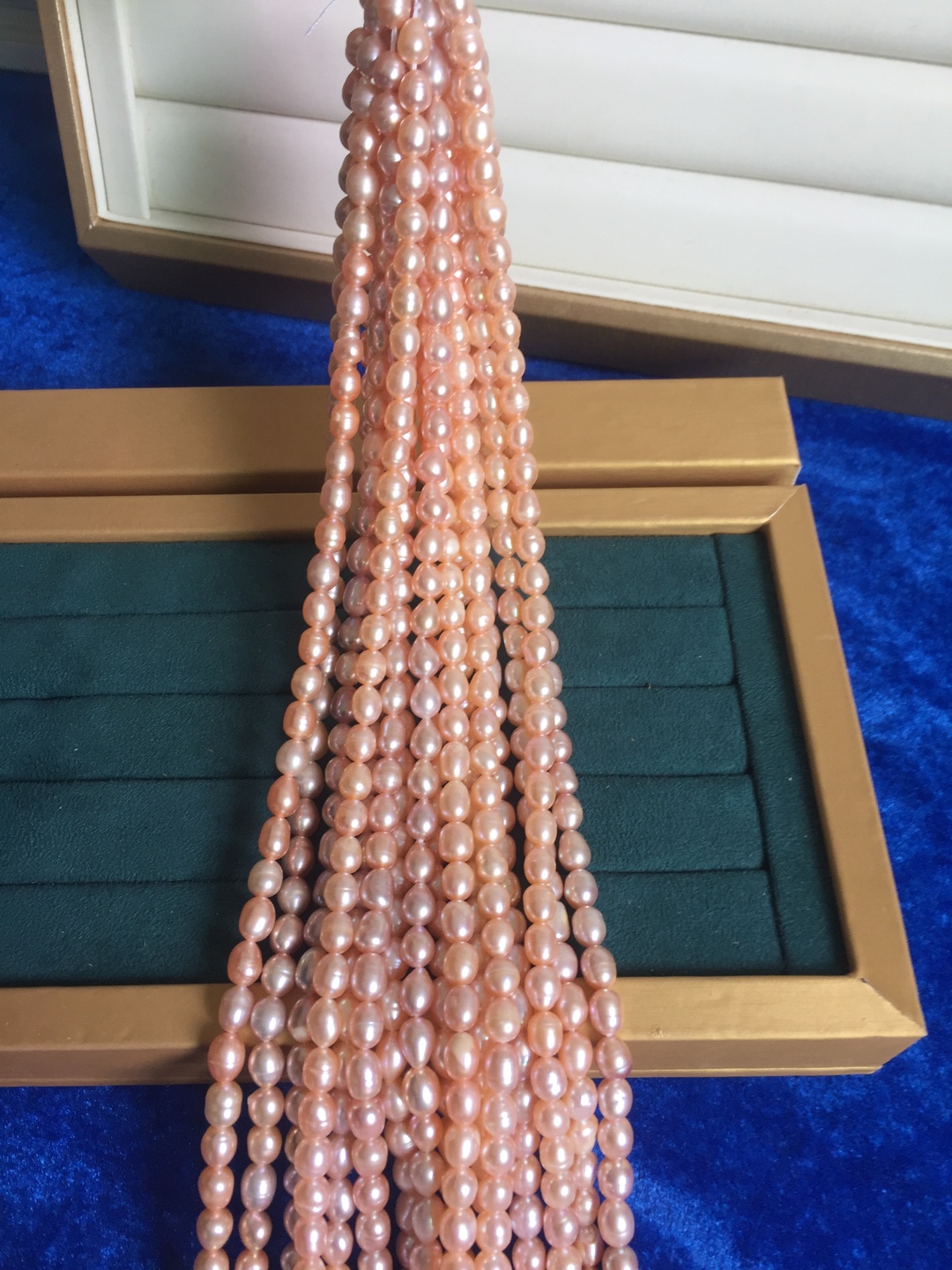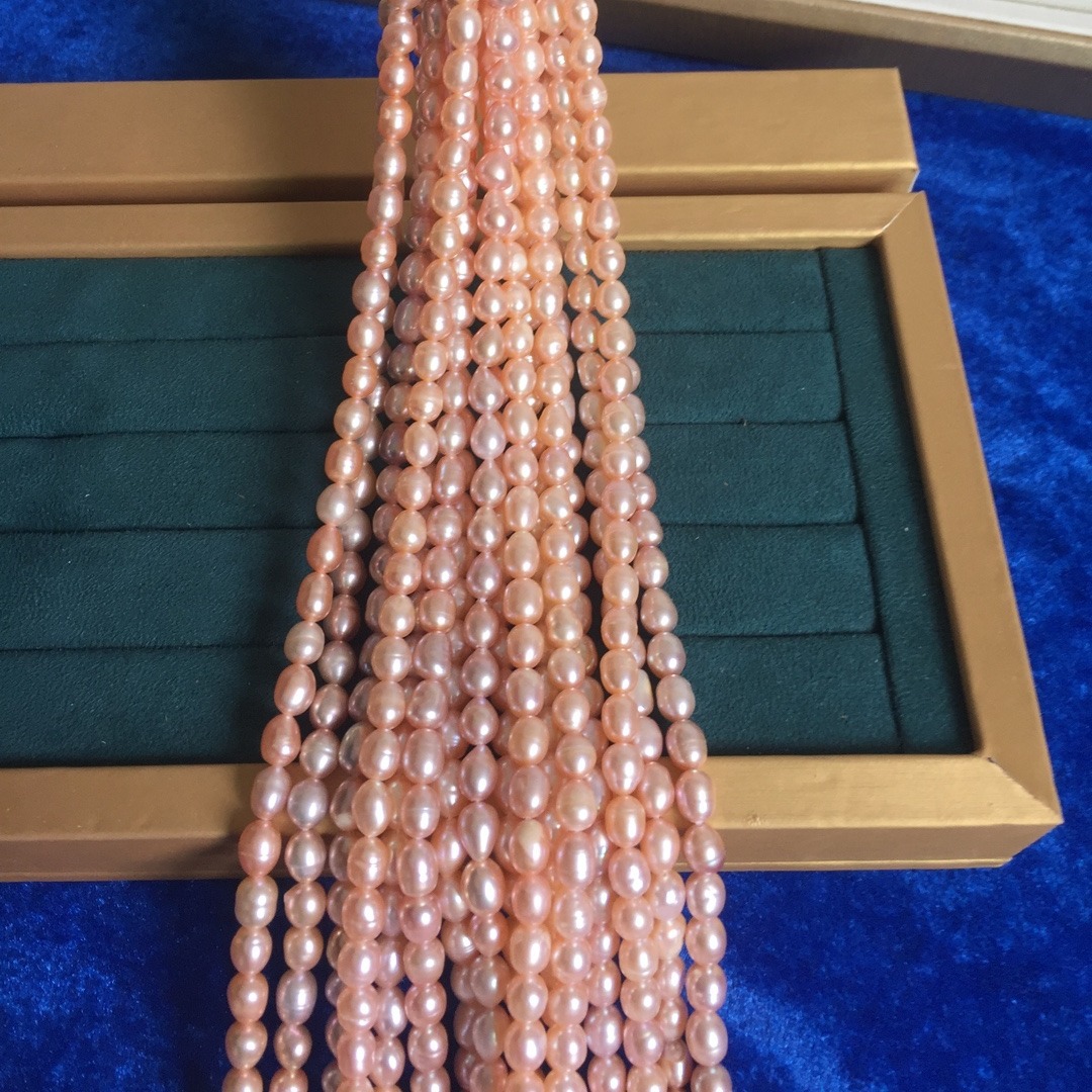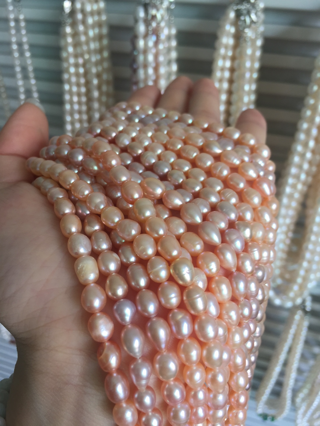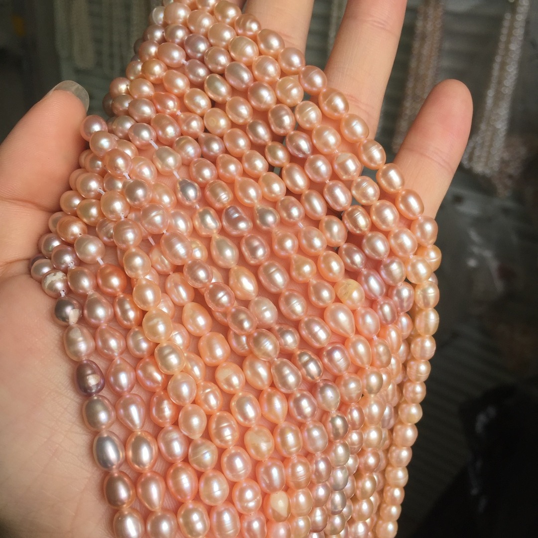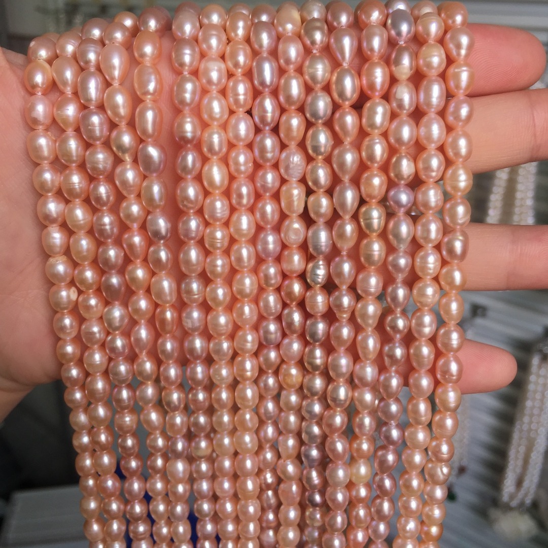 Perles d'eau douce de culture de riz, perle d'eau douce cultivée, DIY, rose, About:6-7MM, Longueur:35 cm, Vendu par brin