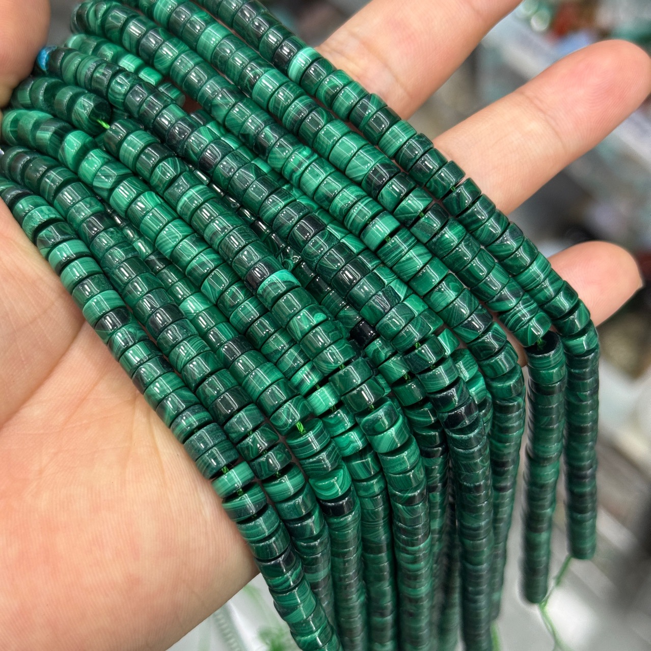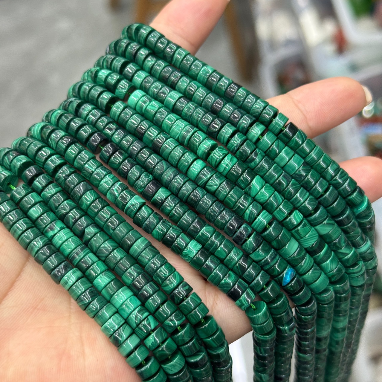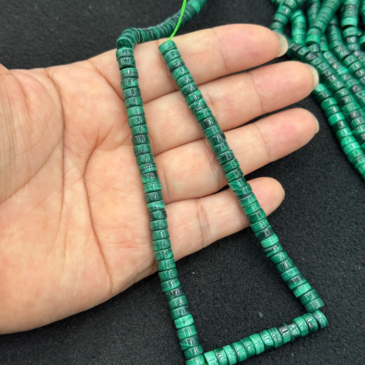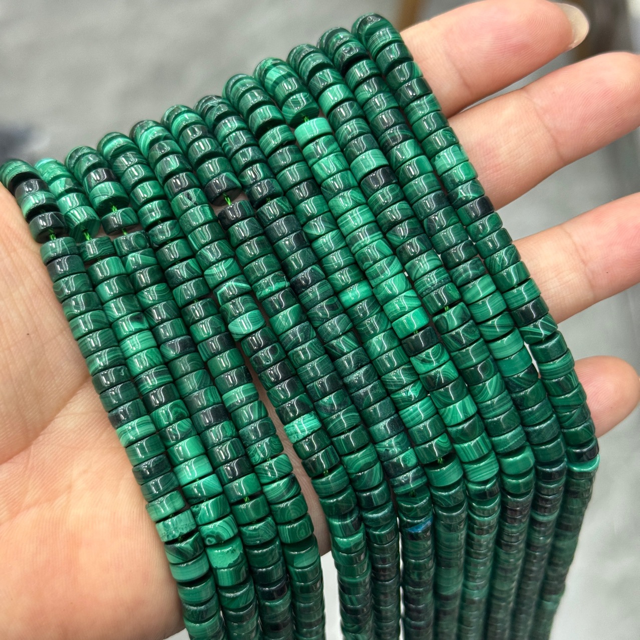 Perles en Malachite naturelle, DIY, 6x3mm, Longueur:Environ 38 cm, Vendu par brin