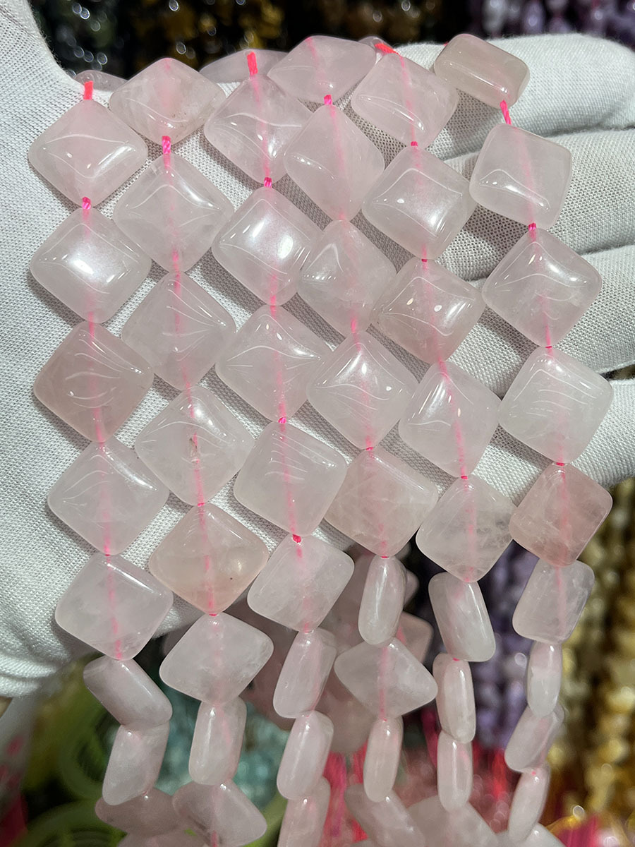 Perles en Quartz Rose naturel, Losange, DIY, rose, 15mm, Longueur:38 cm, Vendu par brin