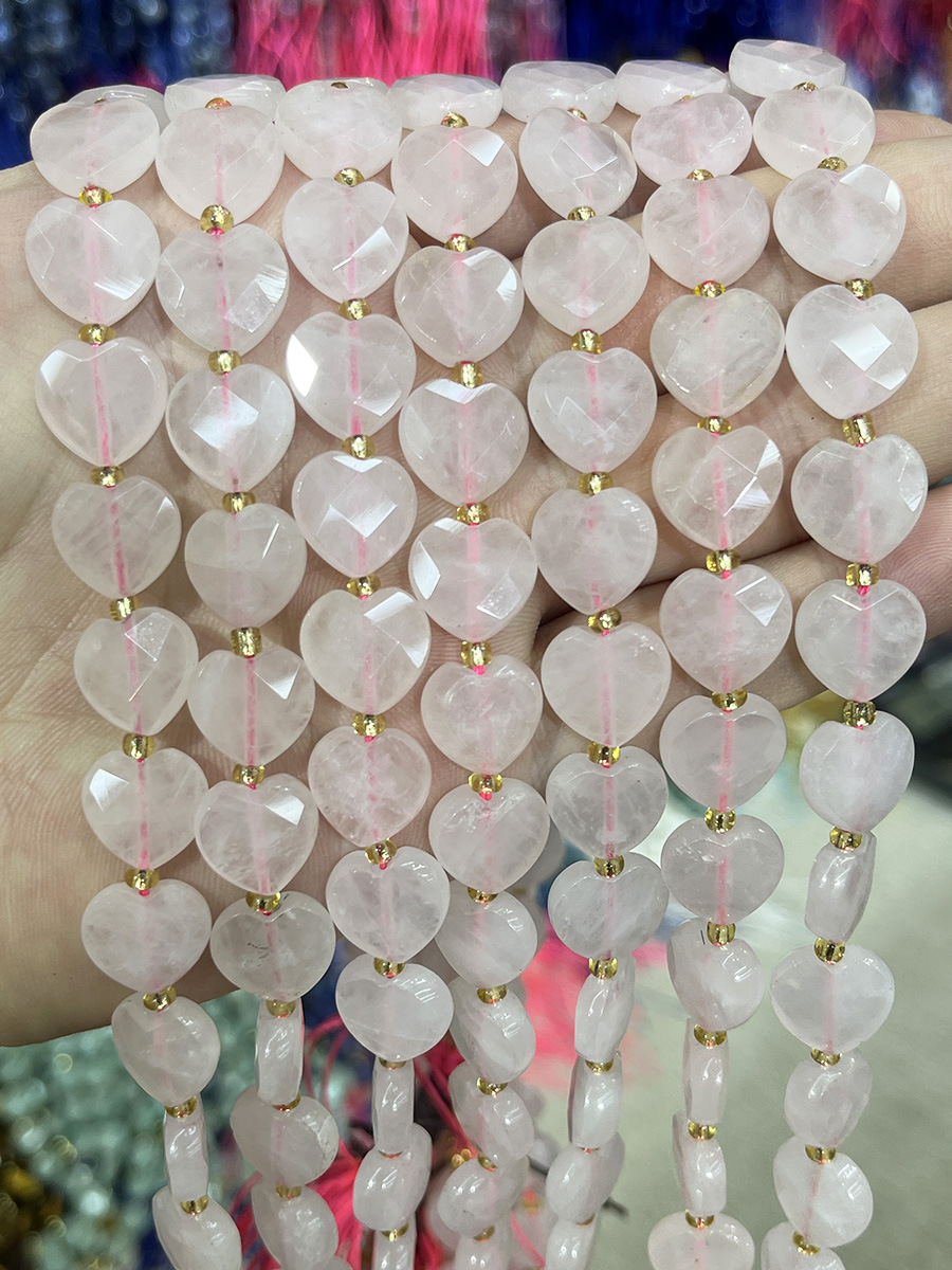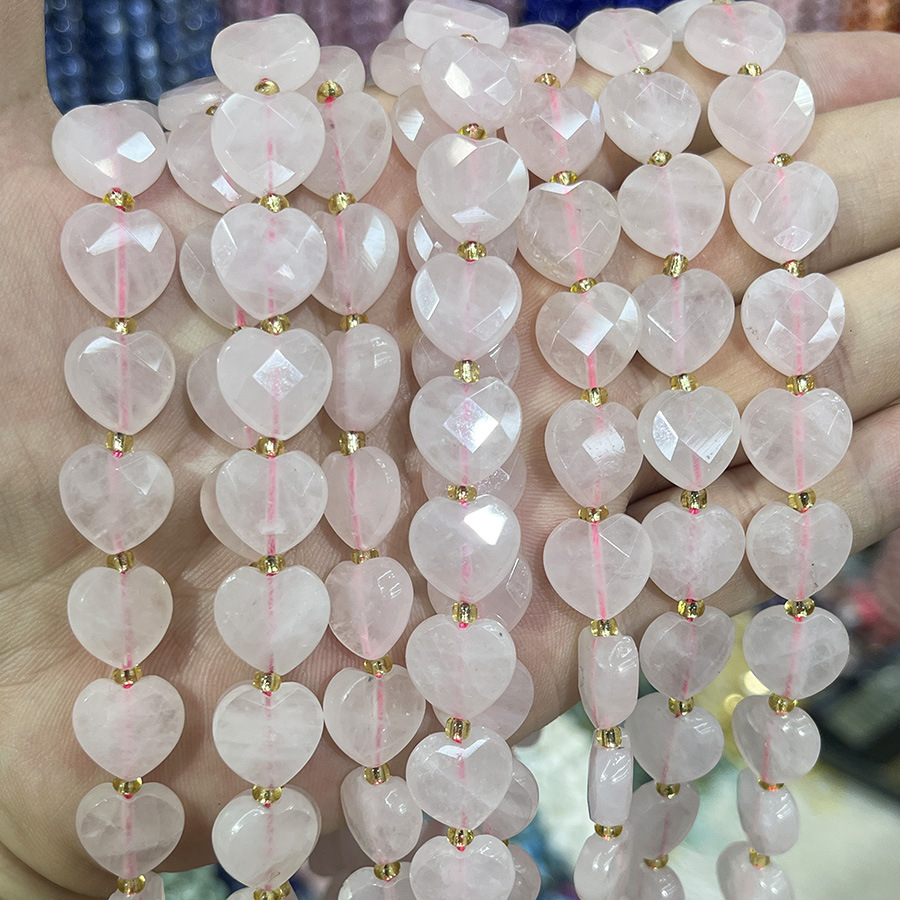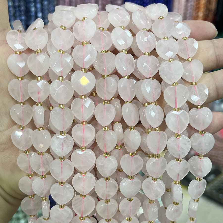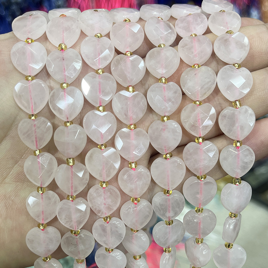 Perles en Quartz Rose naturel, avec Seedbead, coeur, DIY, rose, 12mm, Longueur:38 cm, Vendu par brin