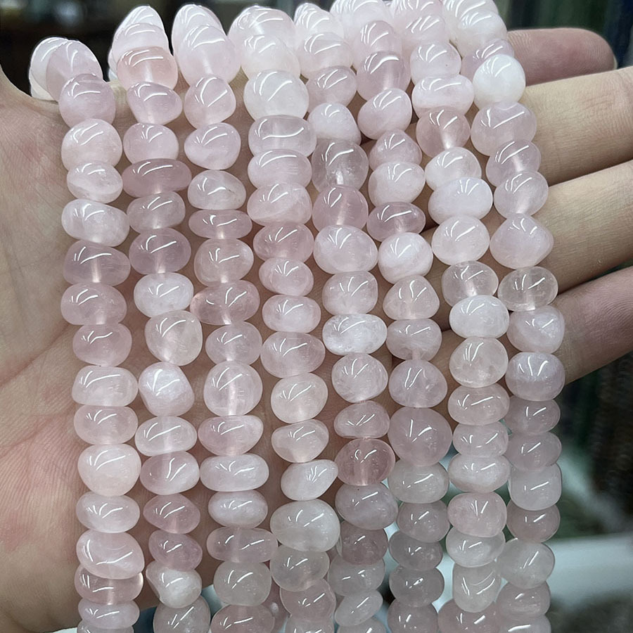 Perles en Quartz Rose naturel, DIY, rose, 7-12mm, Longueur:38 cm, Vendu par brin