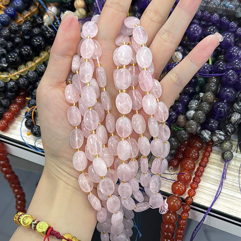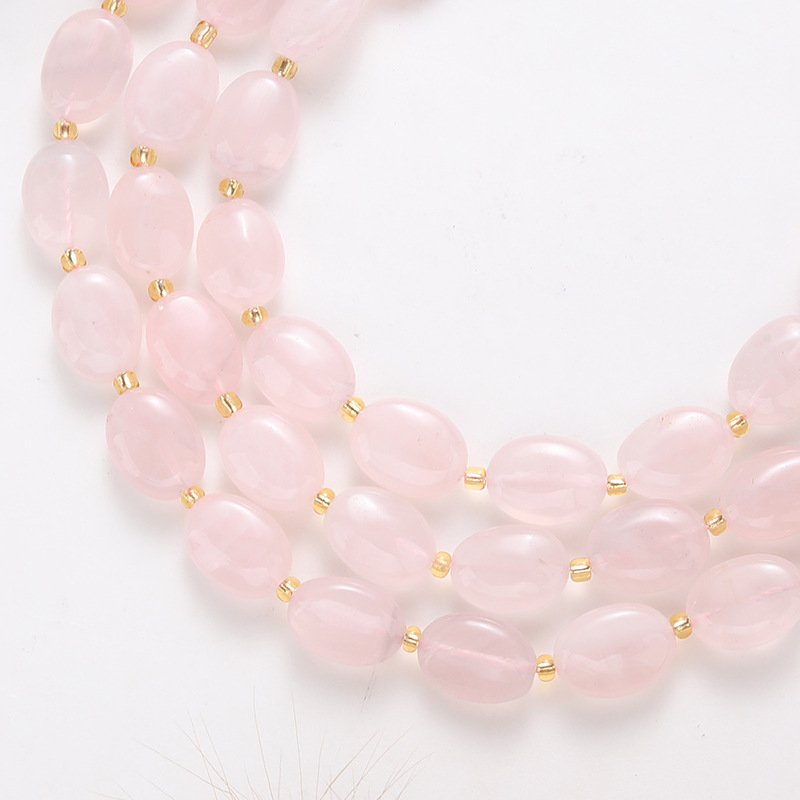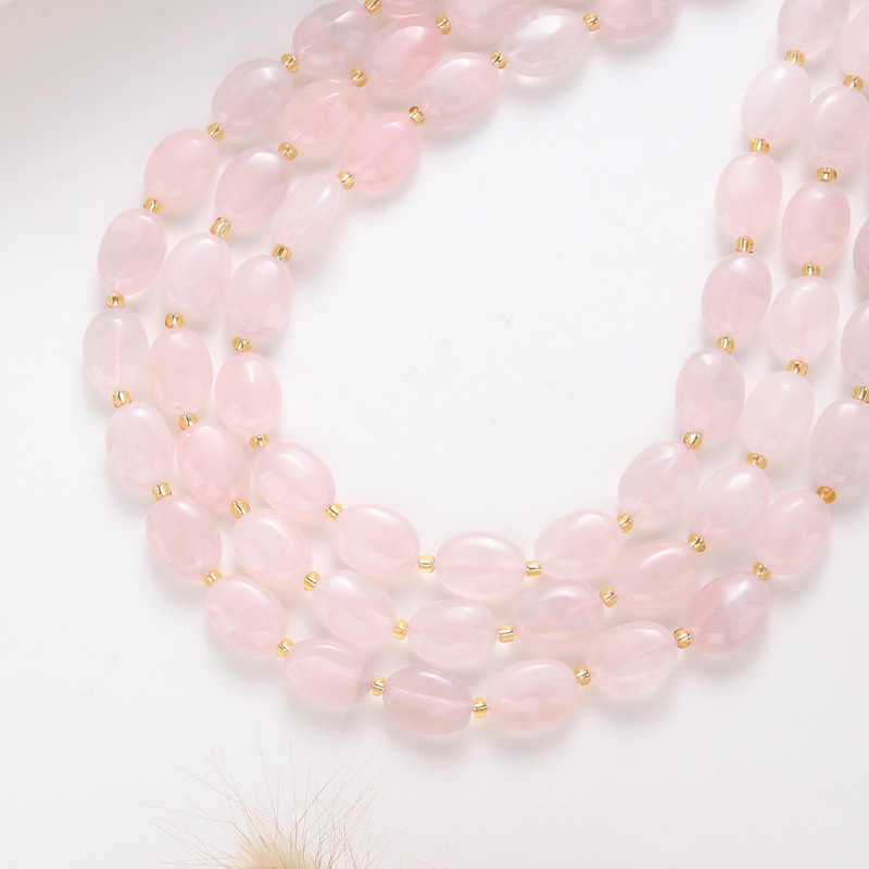 Perles en Quartz Rose naturel, Quartz rose de Madagascar, avec Seedbead, ovale, DIY, rose, 14x10x6mm, Longueur:38 cm, Vendu par brin