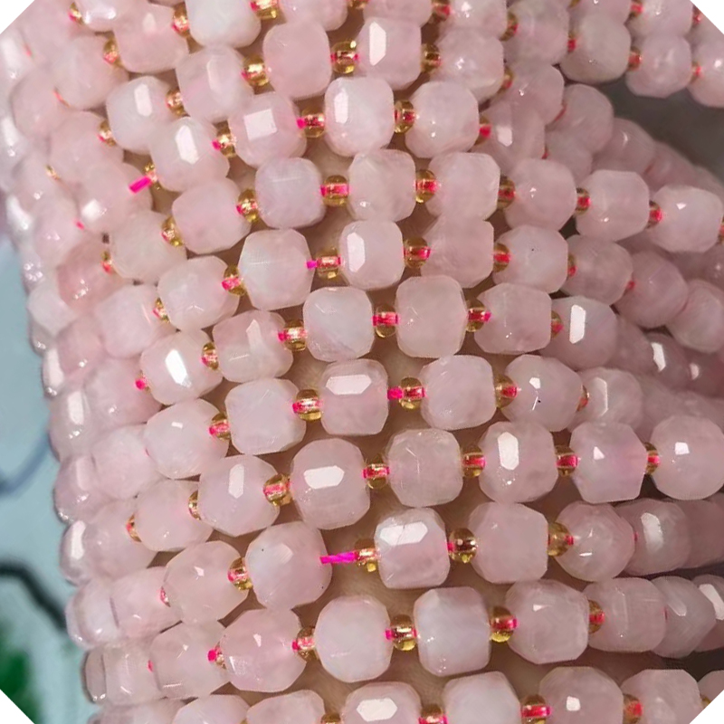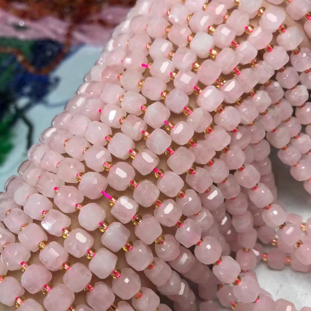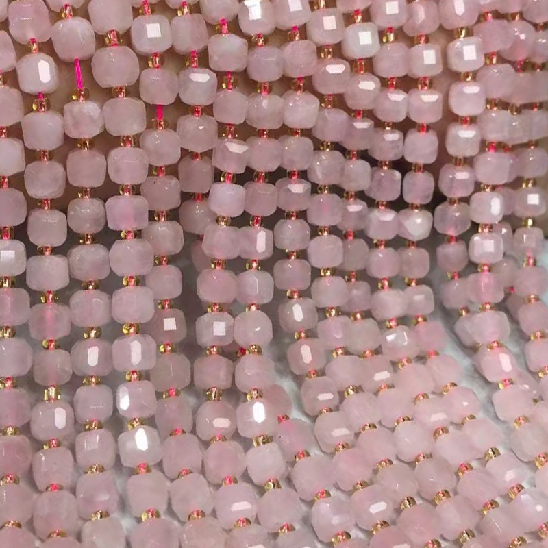 Perles en Quartz Rose naturel, cadre, DIY, 7x7mm, Longueur:Environ 35-40 cm, Vendu par brin