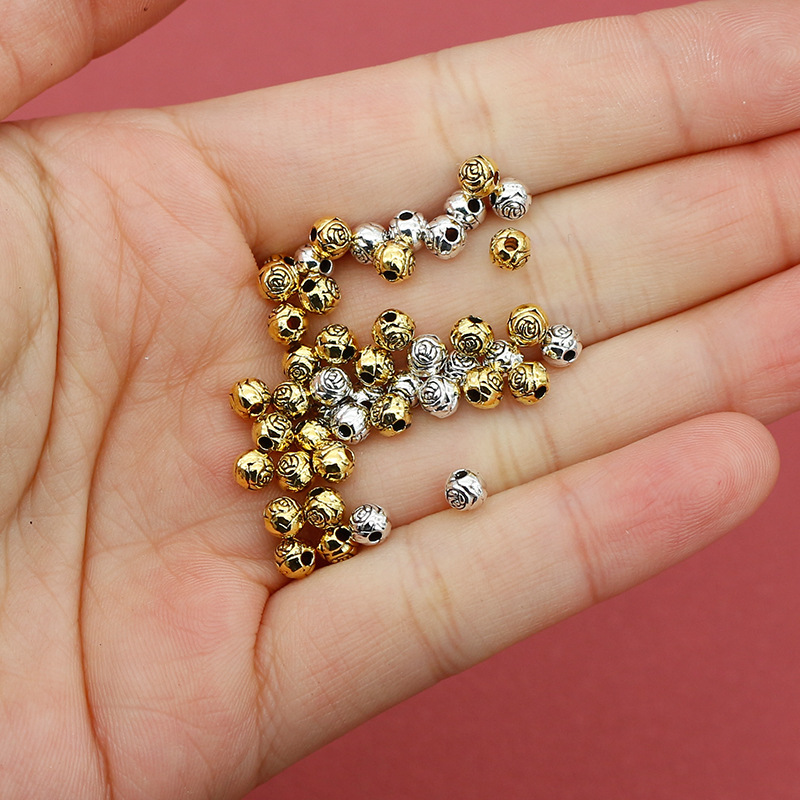 Perles en alliage de zinc de fleur, Rose, Placage, DIY, plus de couleurs à choisir, 4mm, Trou:Environ 1mm, Environ 100PC/sac, Vendu par sac
