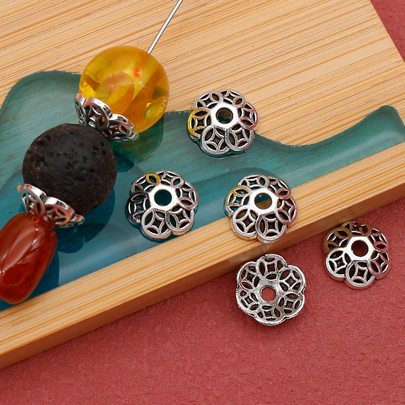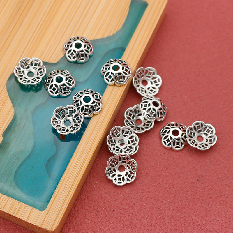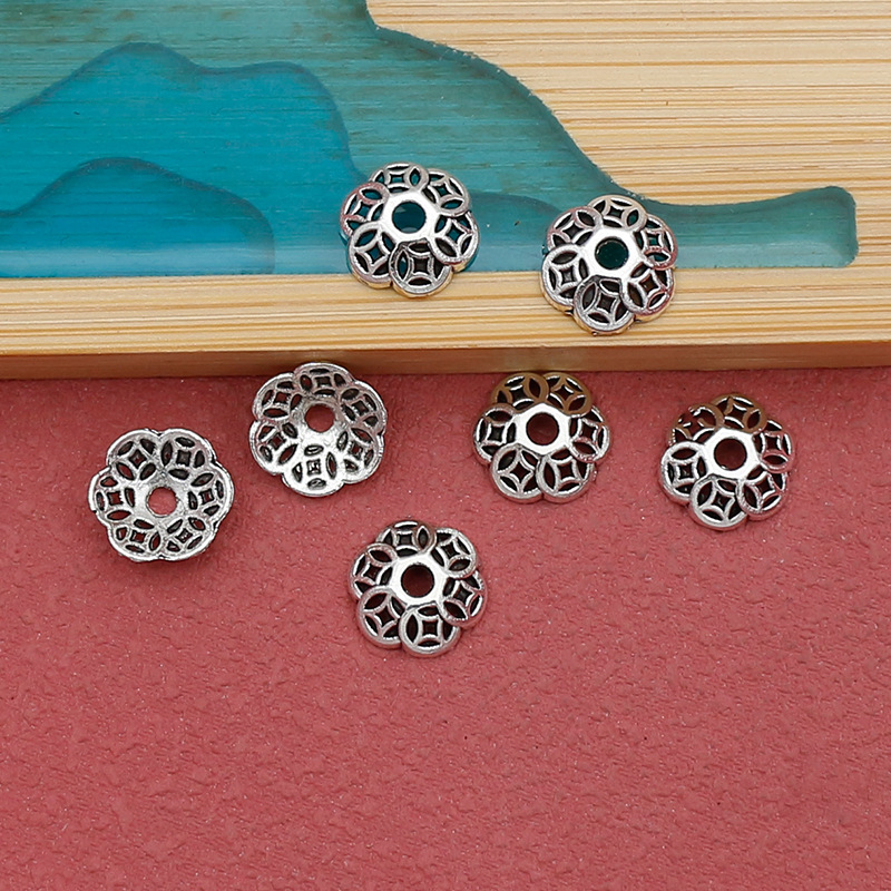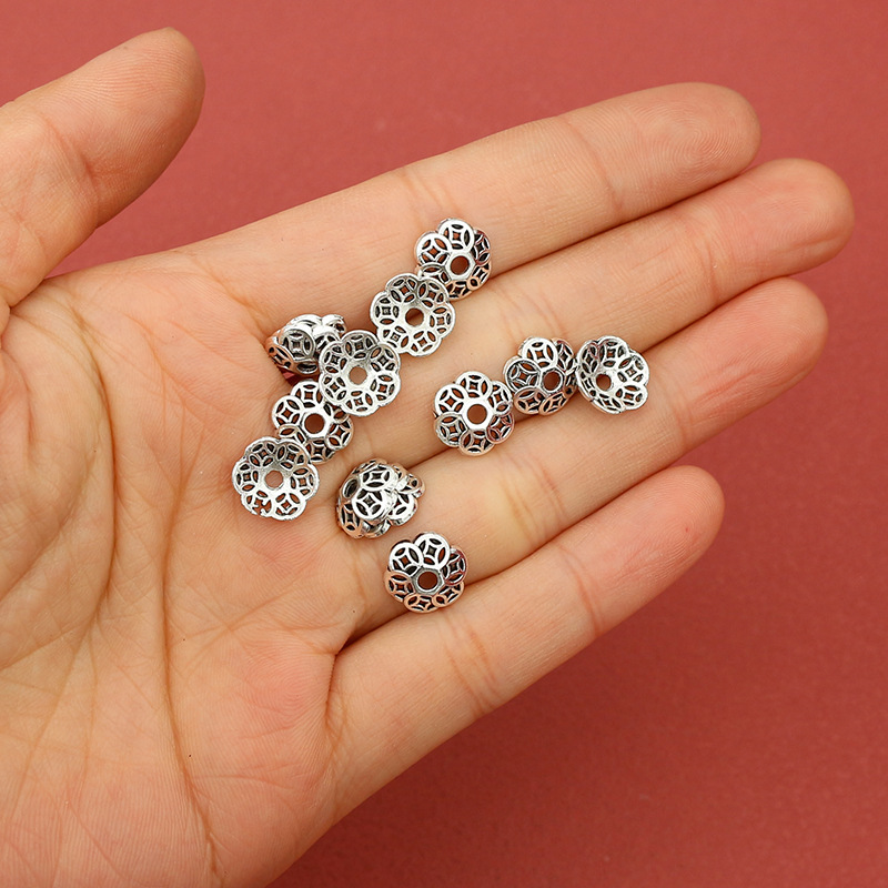 Perles en alliage zinc, alliage de zinc, fleur, Plaqué de couleur d'argent, DIY, 10mm, Trou:Environ 2mm, Environ 100PC/sac, Vendu par sac