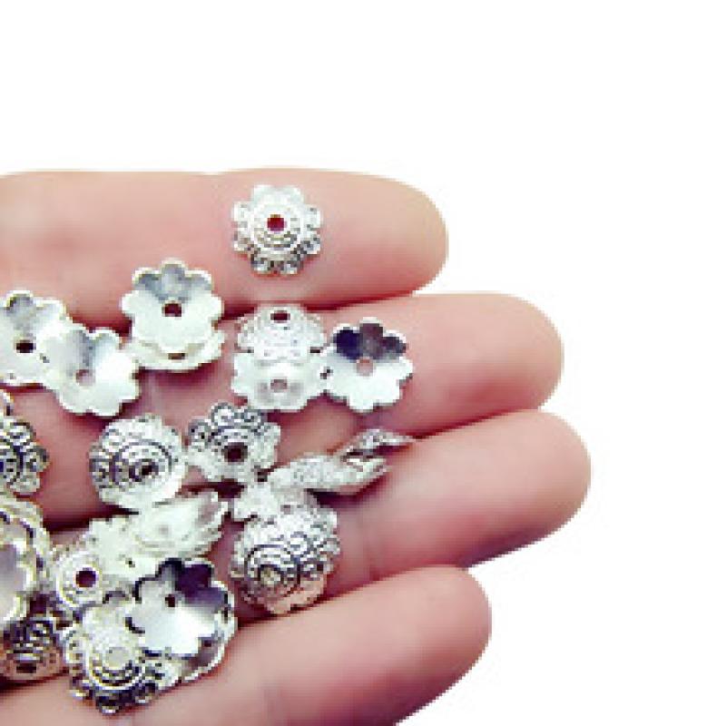 Perles en alliage zinc, alliage de zinc, fleur, Plaqué de couleur d'argent, sans plomb et cadmium Environ 1mm, Environ Vendu par sac