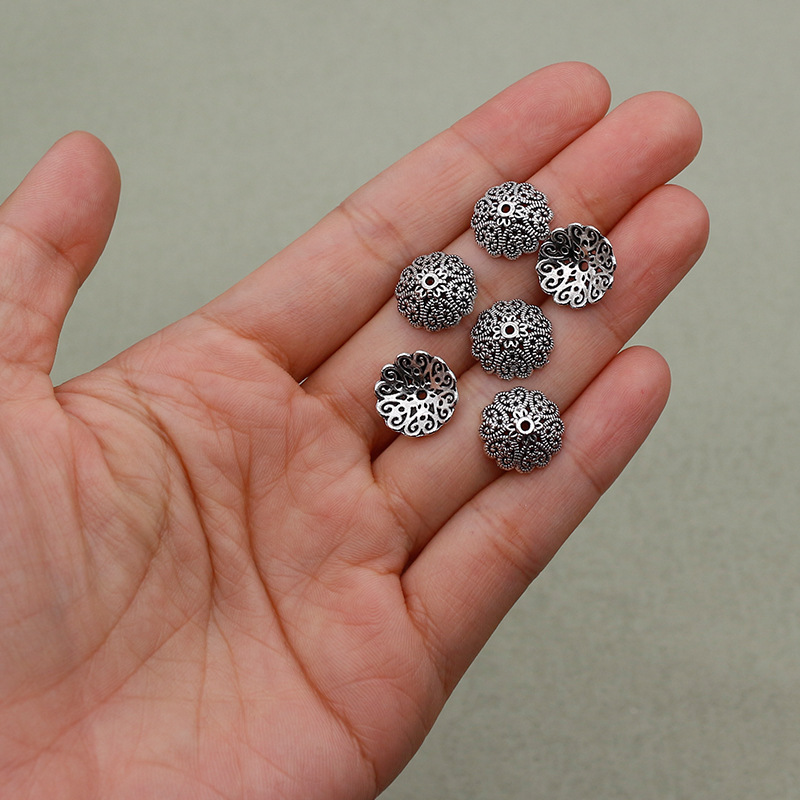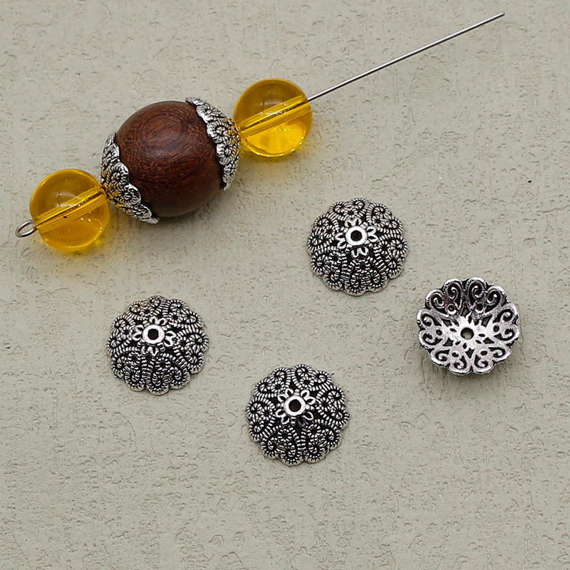 Perles en alliage zinc, alliage de zinc, fleur, Placage de couleur argentée, DIY, argent, 13mm, Trou:Environ 1mm, Vendu par PC