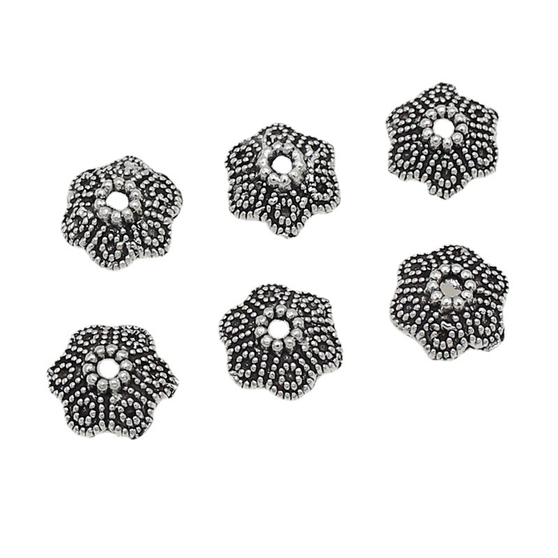 Perles en alliage zinc, alliage de zinc, fleur, Placage de couleur argentée, DIY, 11mm, Diamètre intérieur:Environ 1.5mm, 100PC/sac, Vendu par sac