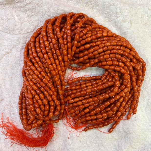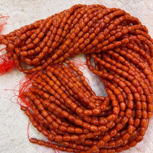 Perles en corail naturel, tube, rouge, grade A Environ 1mm .5 pouce, Environ Vendu par kg