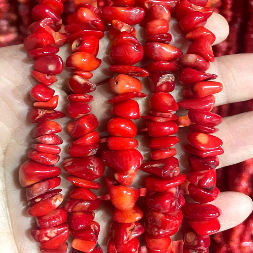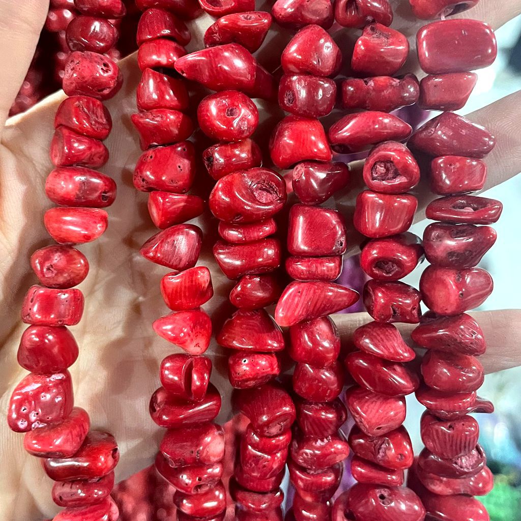 Perles en corail naturel, pepite, poli, DIY & styles différents pour le choix, rouge, 5mm, Longueur:Environ 38 cm, Vendu par brin