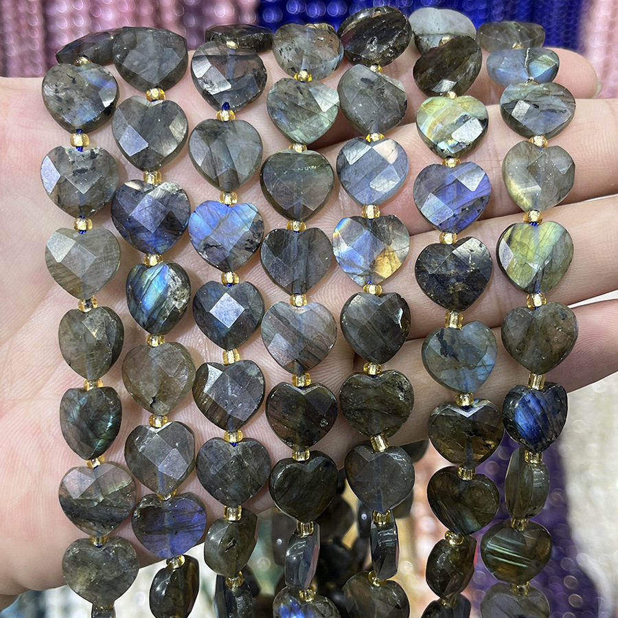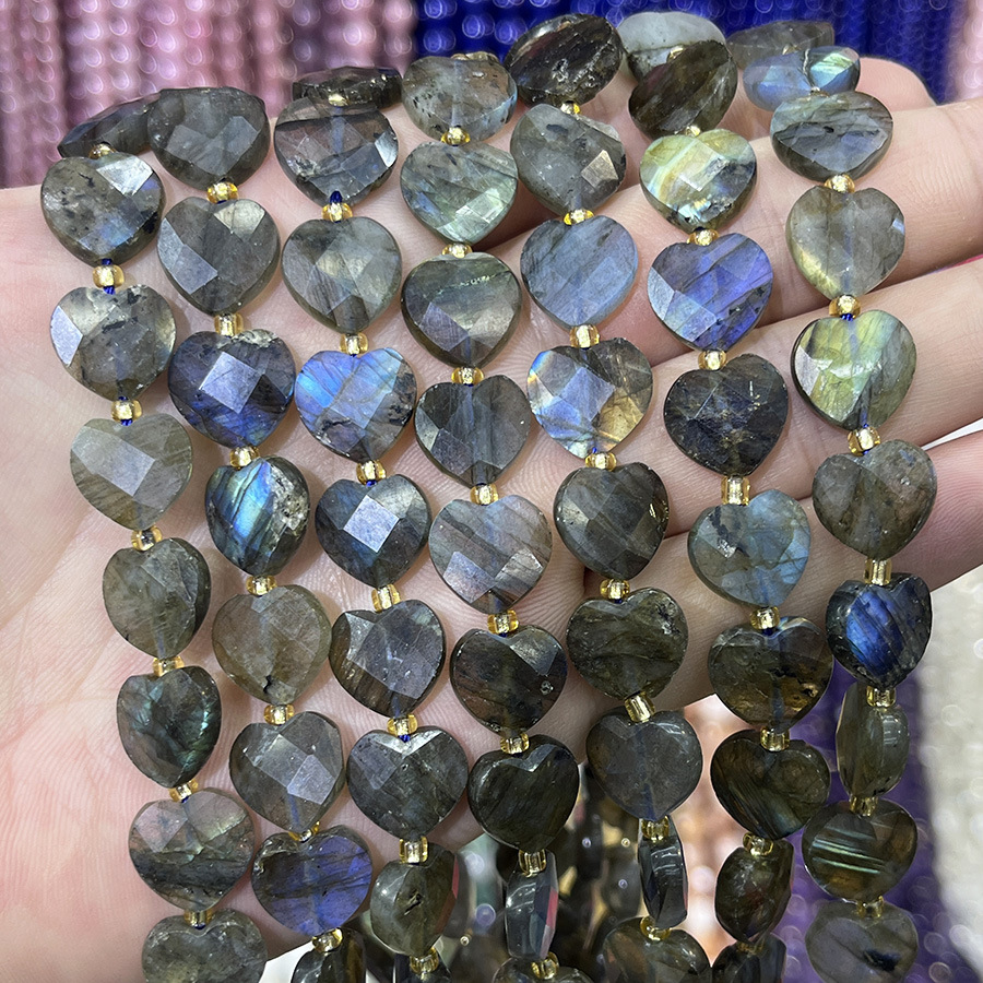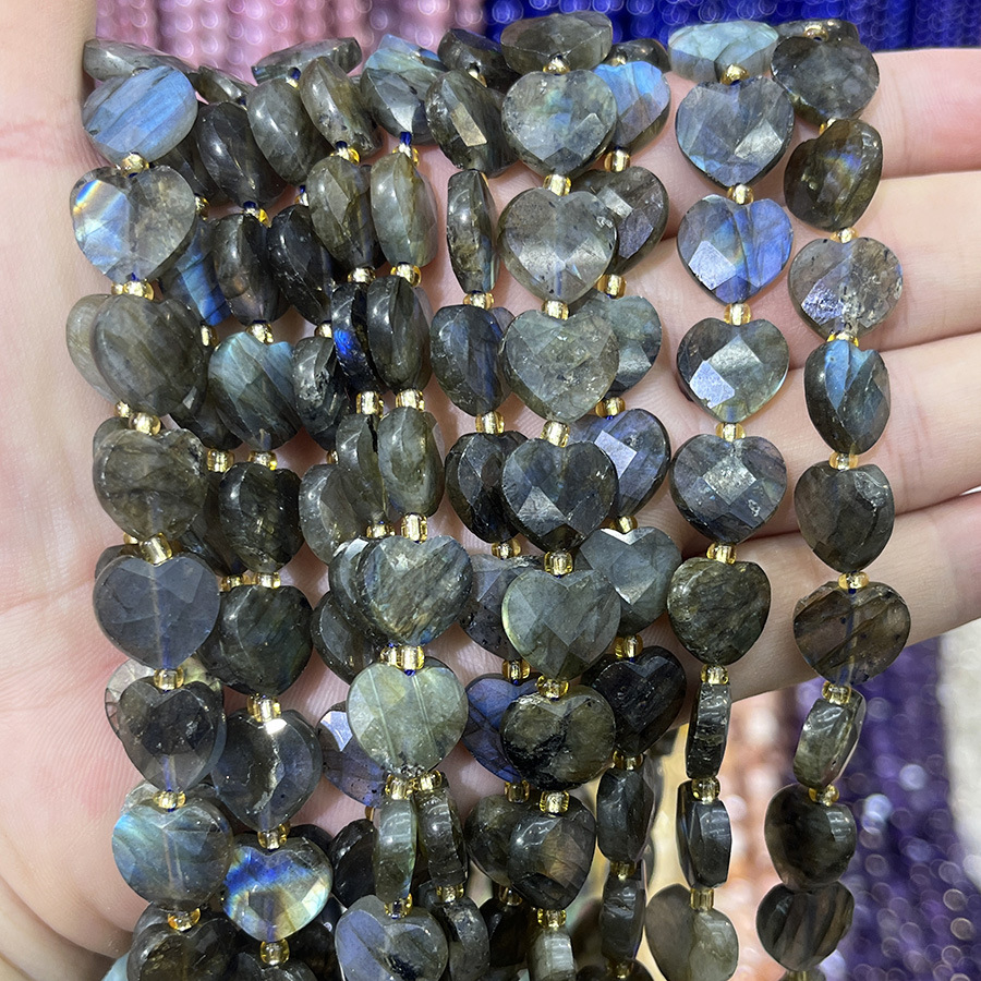Perles en labradorite, avec Seedbead, coeur, DIY, couleurs mélangées, 12mm, Longueur:38 cm, Vendu par brin