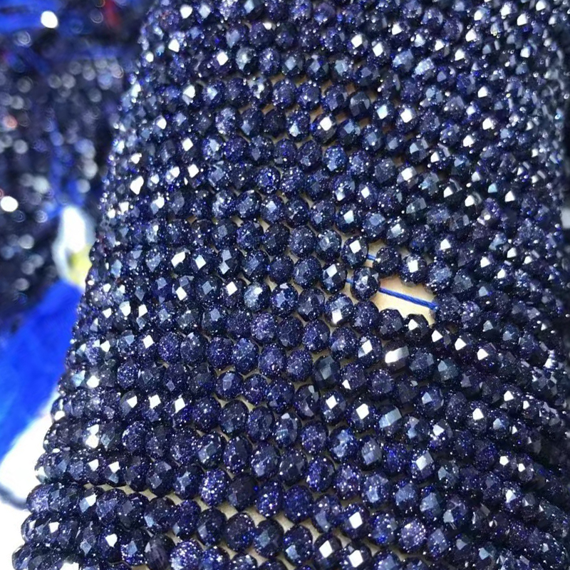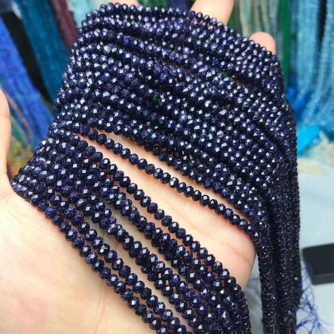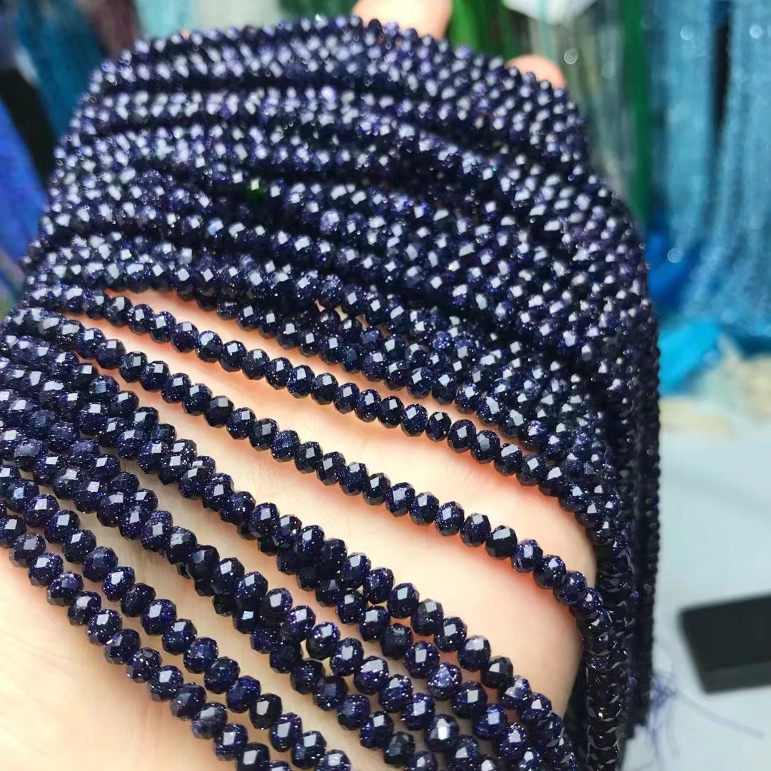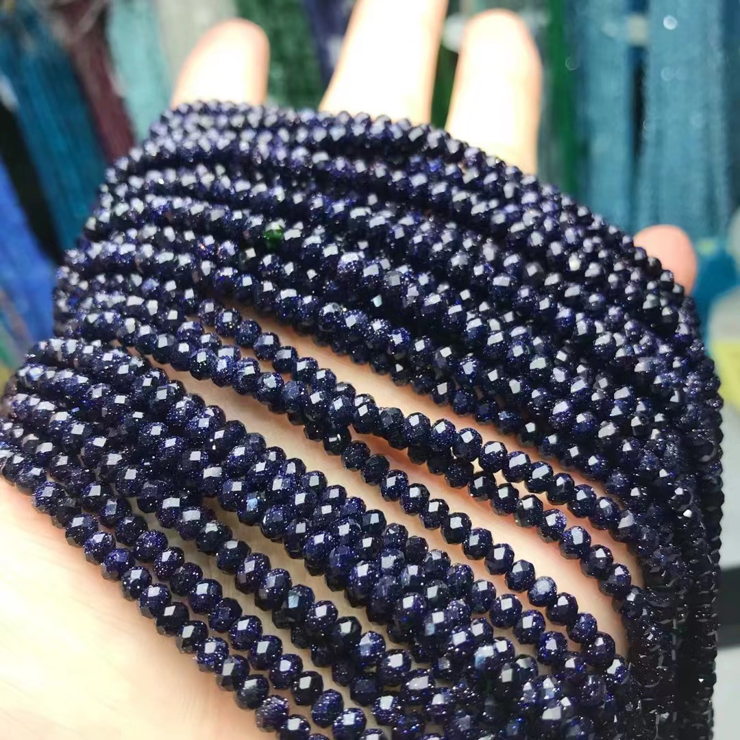 Perles en verre aventuriné bleu, pierre bleue d'or, poli, naturel & DIY & facettes, 3x4mm, Longueur:Environ 35-40 cm, Vendu par brin