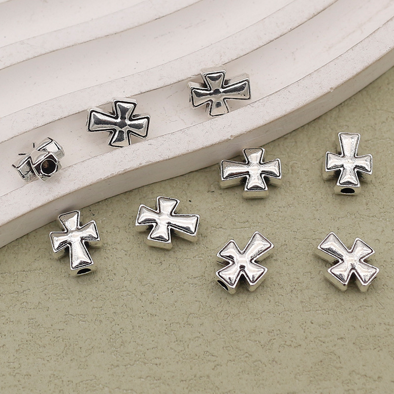Perles intercalaires en alliage de zinc, croix, Placage de couleur argentée, DIY, argent, 7.5x9.5mm, Trou:Environ 2mm, Vendu par PC
