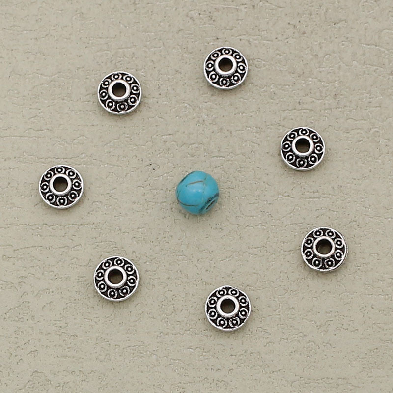 Perles intercalaires en alliage de zinc, Placage de couleur argentée, DIY, argent, 6x3mm, Trou:Environ 2mm, Vendu par PC