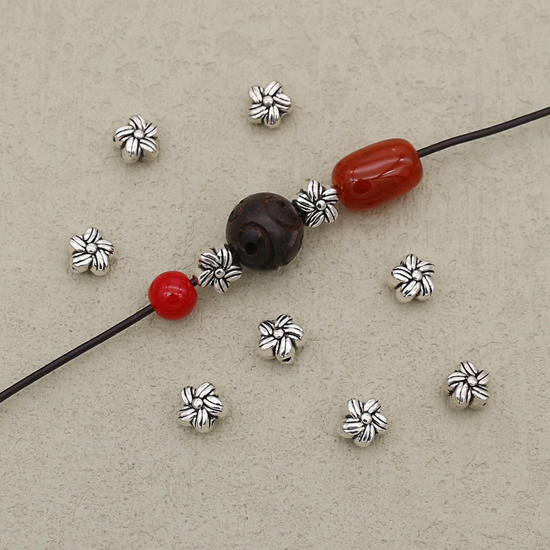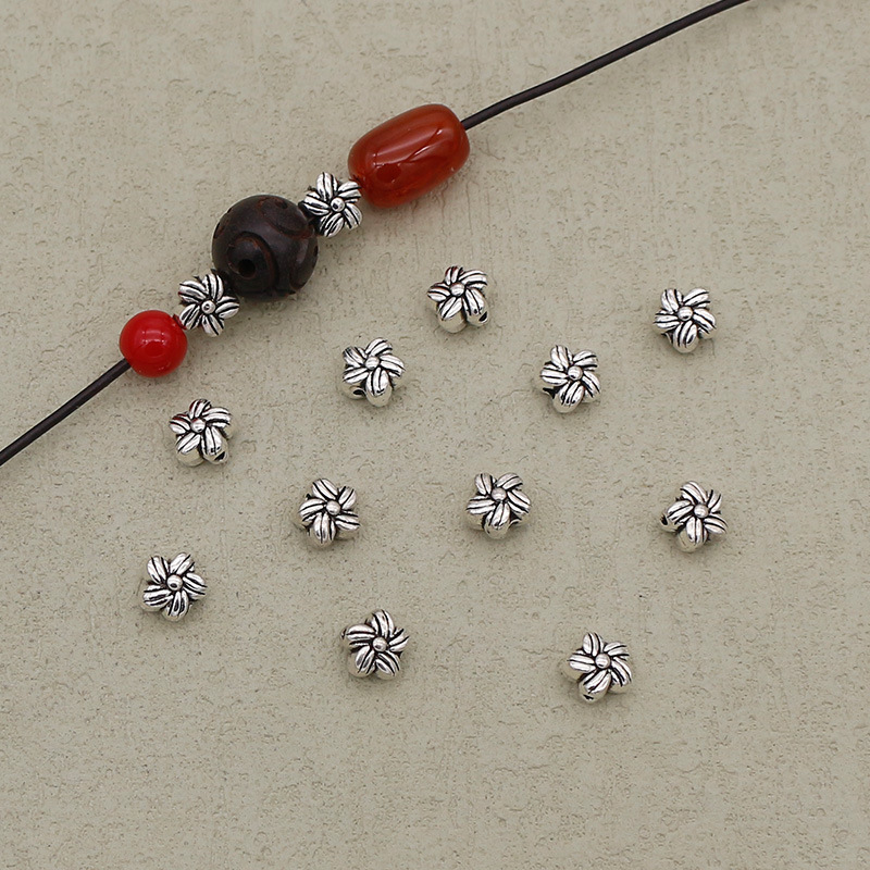 Perles intercalaires en alliage de zinc, fleur, Placage de couleur argentée, DIY, argent, 6mm, Trou:Environ 1mm, Vendu par PC
