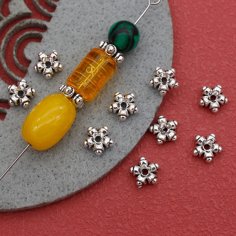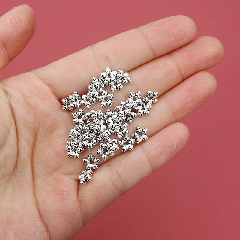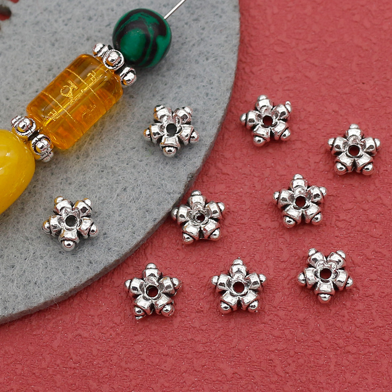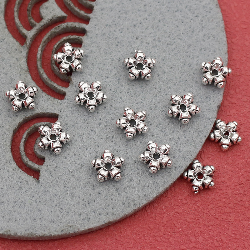 Perles intercalaires en alliage de zinc, flocon de neige, Plaqué de couleur d'argent, DIY, 7x3mm, Trou:Environ 1mm, Environ 100PC/sac, Vendu par sac
