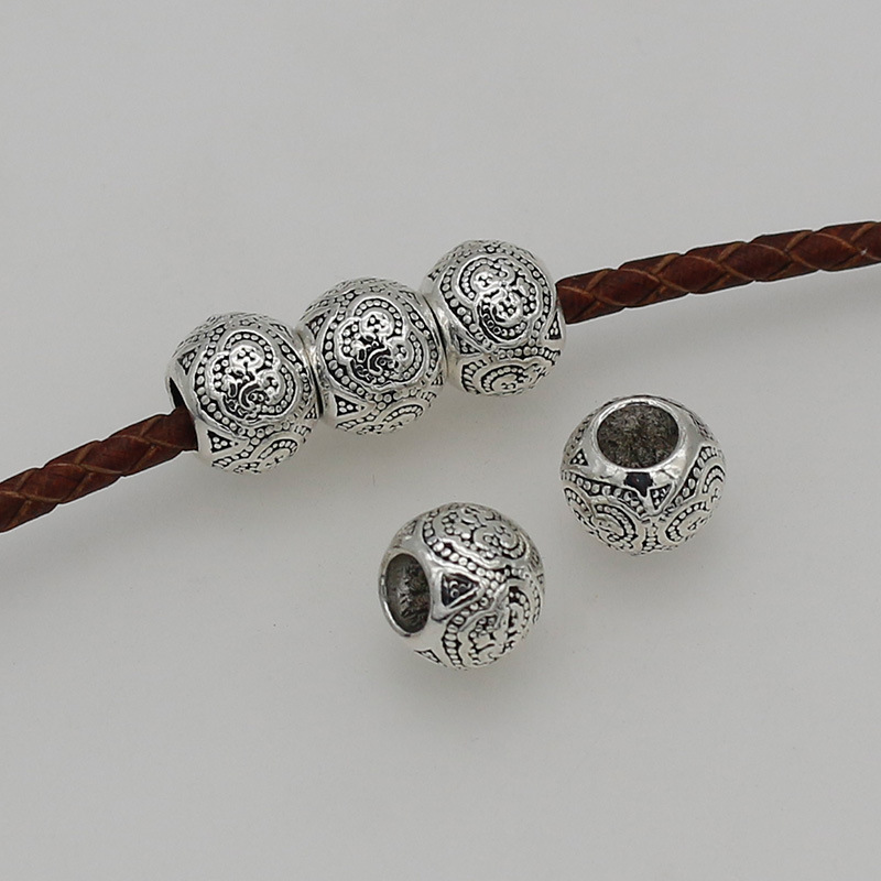 Perles intercalaires en alliage de zinc, Placage de couleur argentée, DIY, 8x6.5mm, Diamètre intérieur:Environ 4mm, 100PC/sac, Vendu par sac