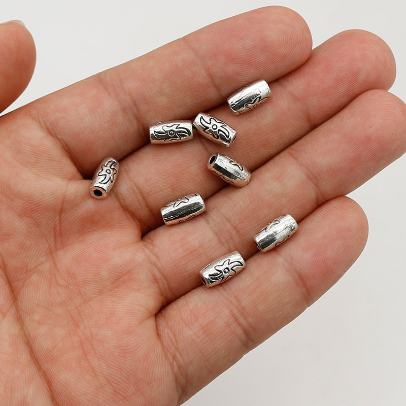 Perles intercalaires en alliage de zinc, Placage de couleur argentée, DIY, 10x5mm, Diamètre intérieur:Environ 2mm, 100PC/sac, Vendu par sac