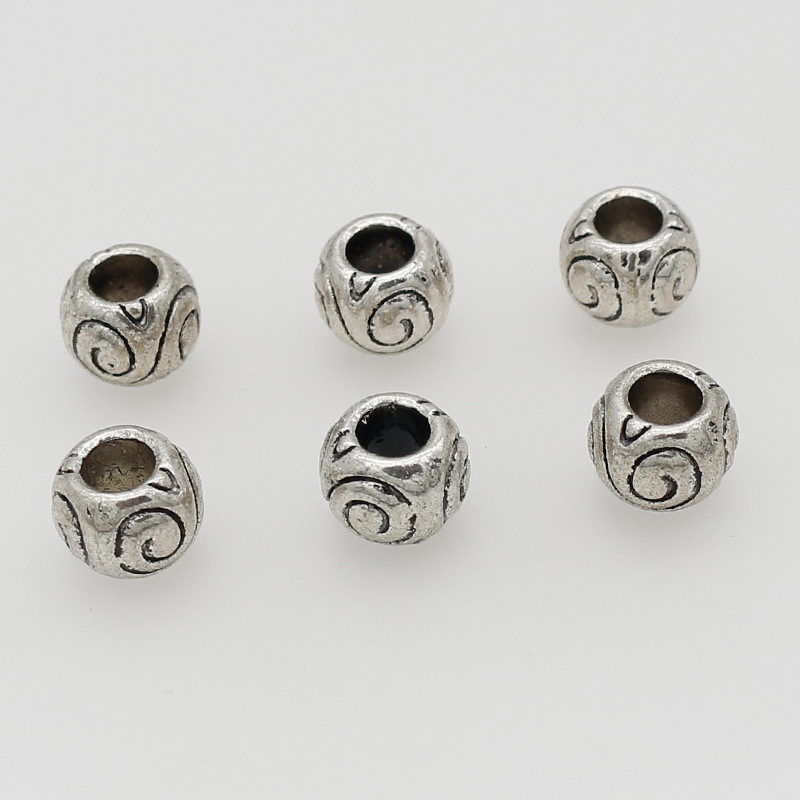 Perles intercalaires en alliage de zinc, Placage de couleur argentée, DIY, 9x7mm, Diamètre intérieur:Environ 5mm, 100PC/sac, Vendu par sac