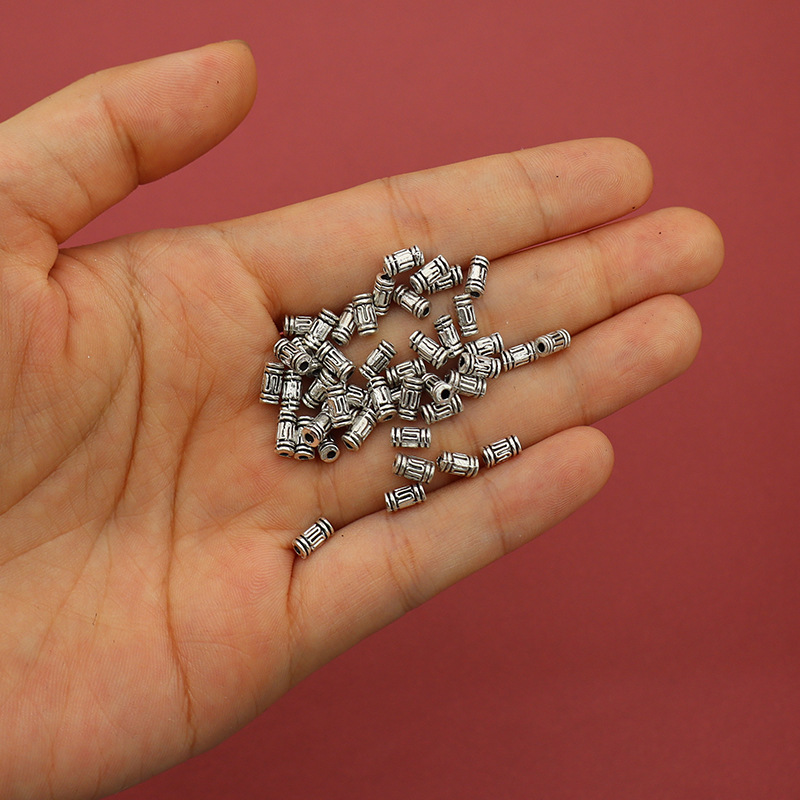 Perles intercalaires en alliage de zinc, Placage de couleur argentée, DIY, 6.5x3mm, Diamètre intérieur:Environ 1mm, 100PC/sac, Vendu par sac
