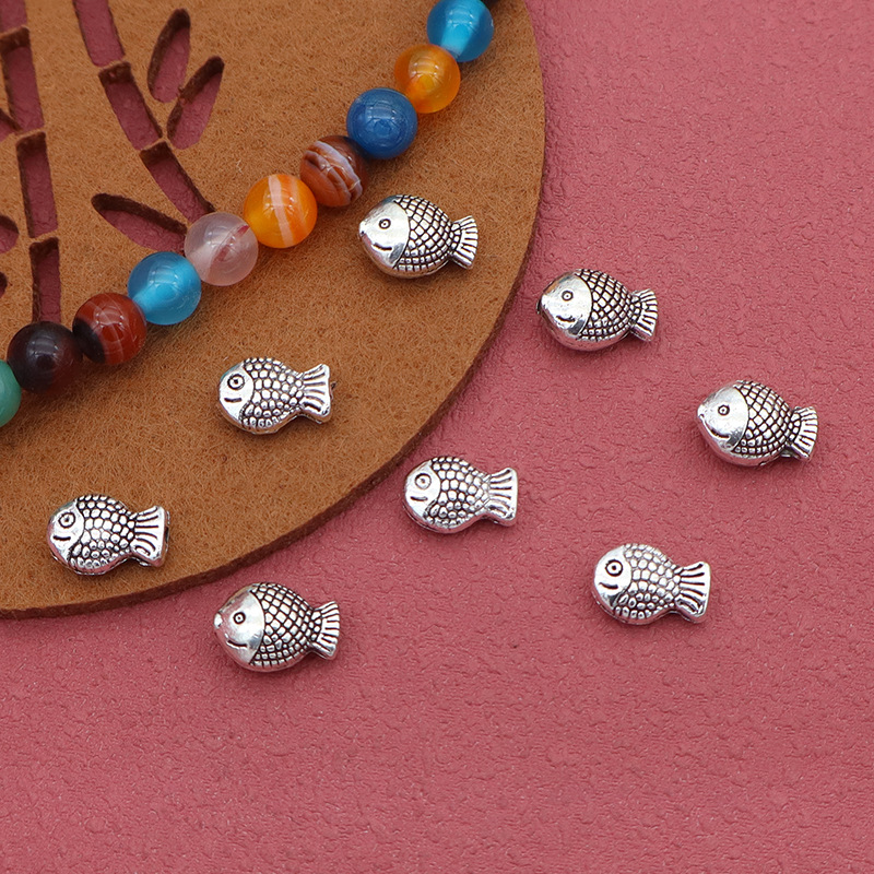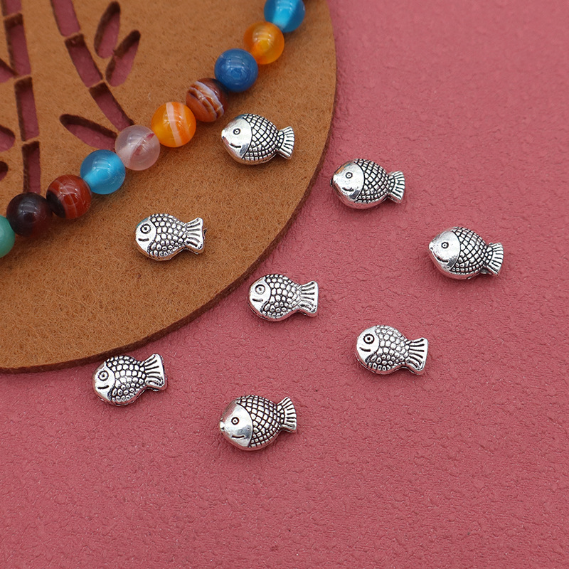 Perles intercalaires en alliage de zinc, poisson, Placage de couleur argentée, DIY, Diamètre intérieur:Environ 1mm, 100PC/sac, Vendu par sac