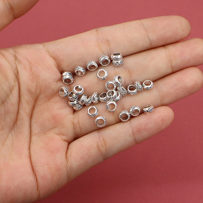 Perles intercalaires en alliage de zinc, Placage de couleur argentée, DIY, 6x3mm, Diamètre intérieur:Environ 3mm, 100PC/sac, Vendu par sac