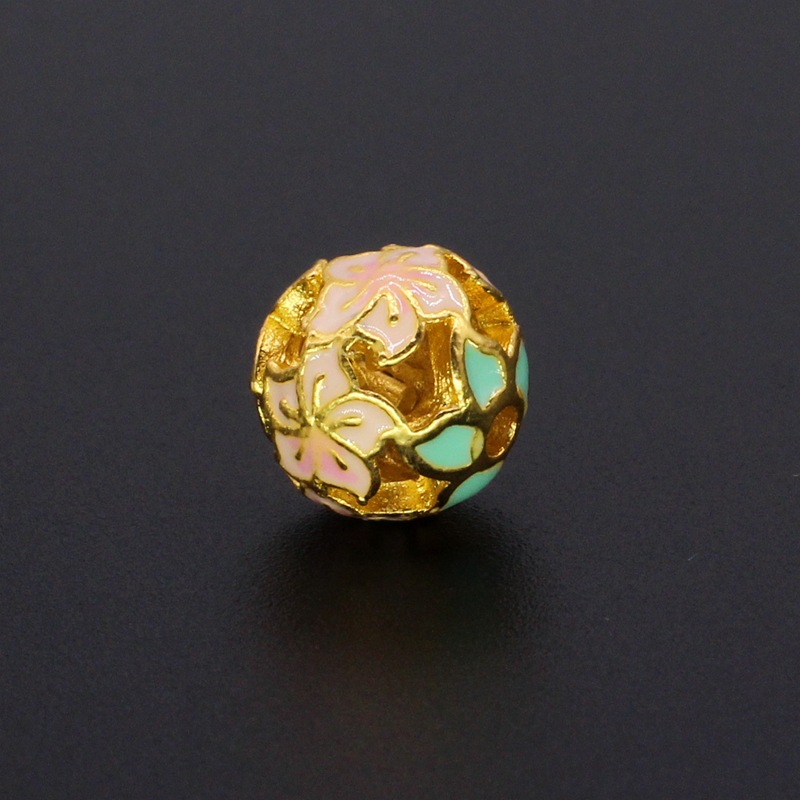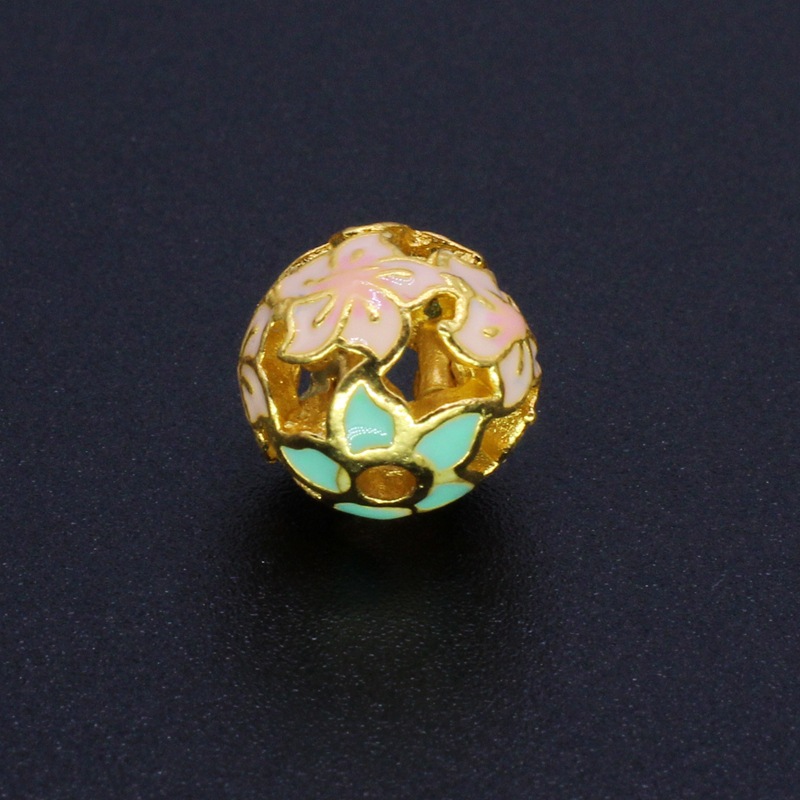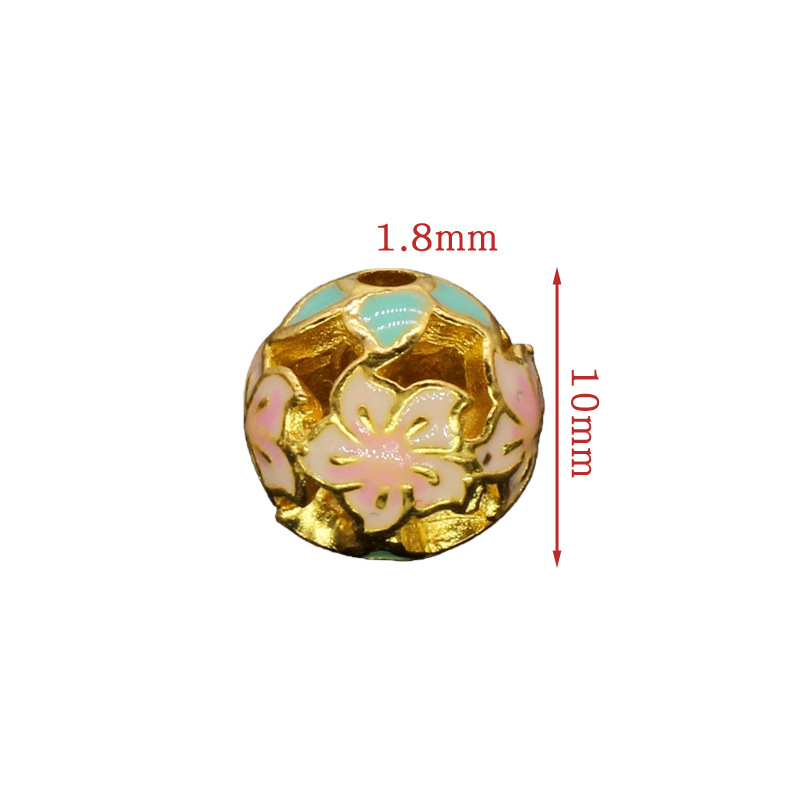 Perles intercalaires en alliage de zinc, Rond, Plaqué or mat, DIY & avec le motif de fleurs & émail, plus de couleurs à choisir, 10mm, Trou:Environ 1.8mm, Vendu par PC