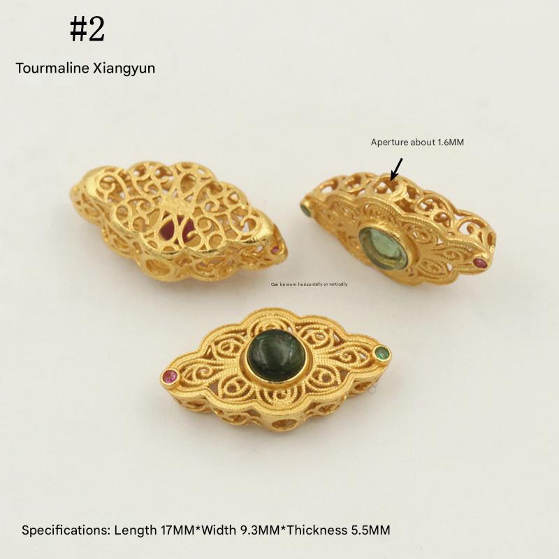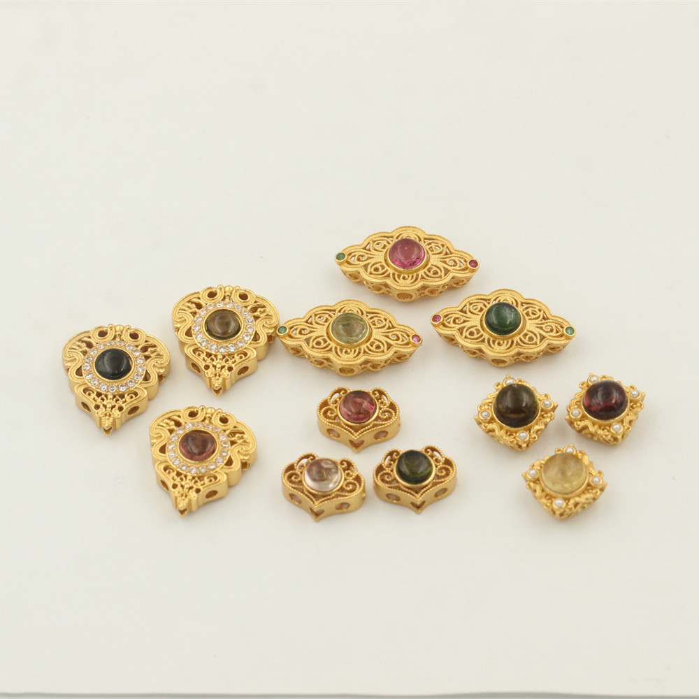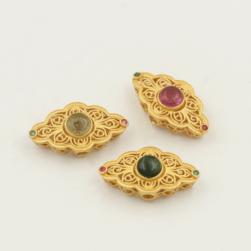 Perles intercalaires en argent , Argent sterling 925, avec tourmaline, Placage de couleur d'or, DIY & styles différents pour le choix, Couleur aléatoire, Vendu par PC