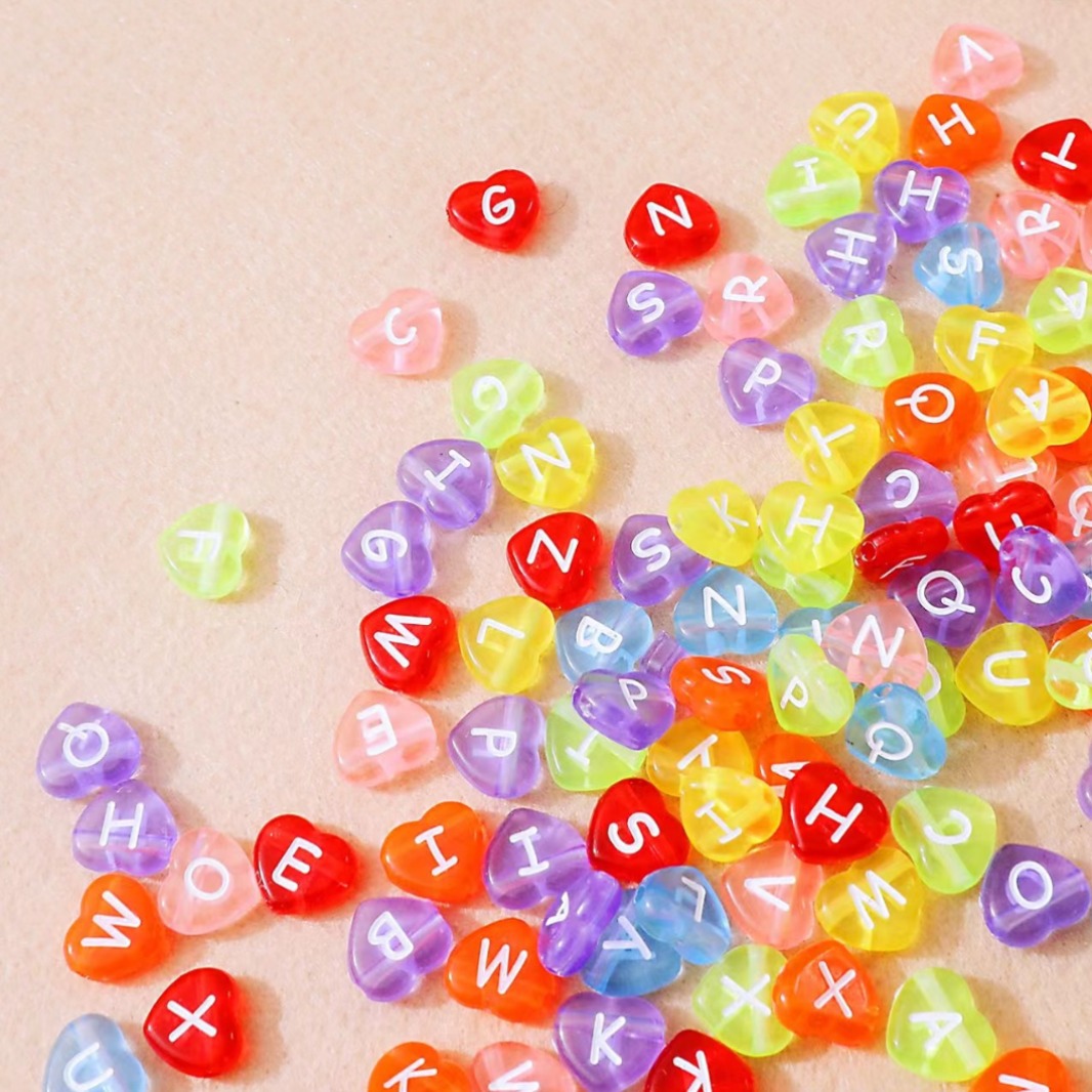 Perles lettre acrylique, coeur, DIY & émail, plus de couleurs à choisir, 4x11mm, Environ 500sol/sac, Vendu par sac