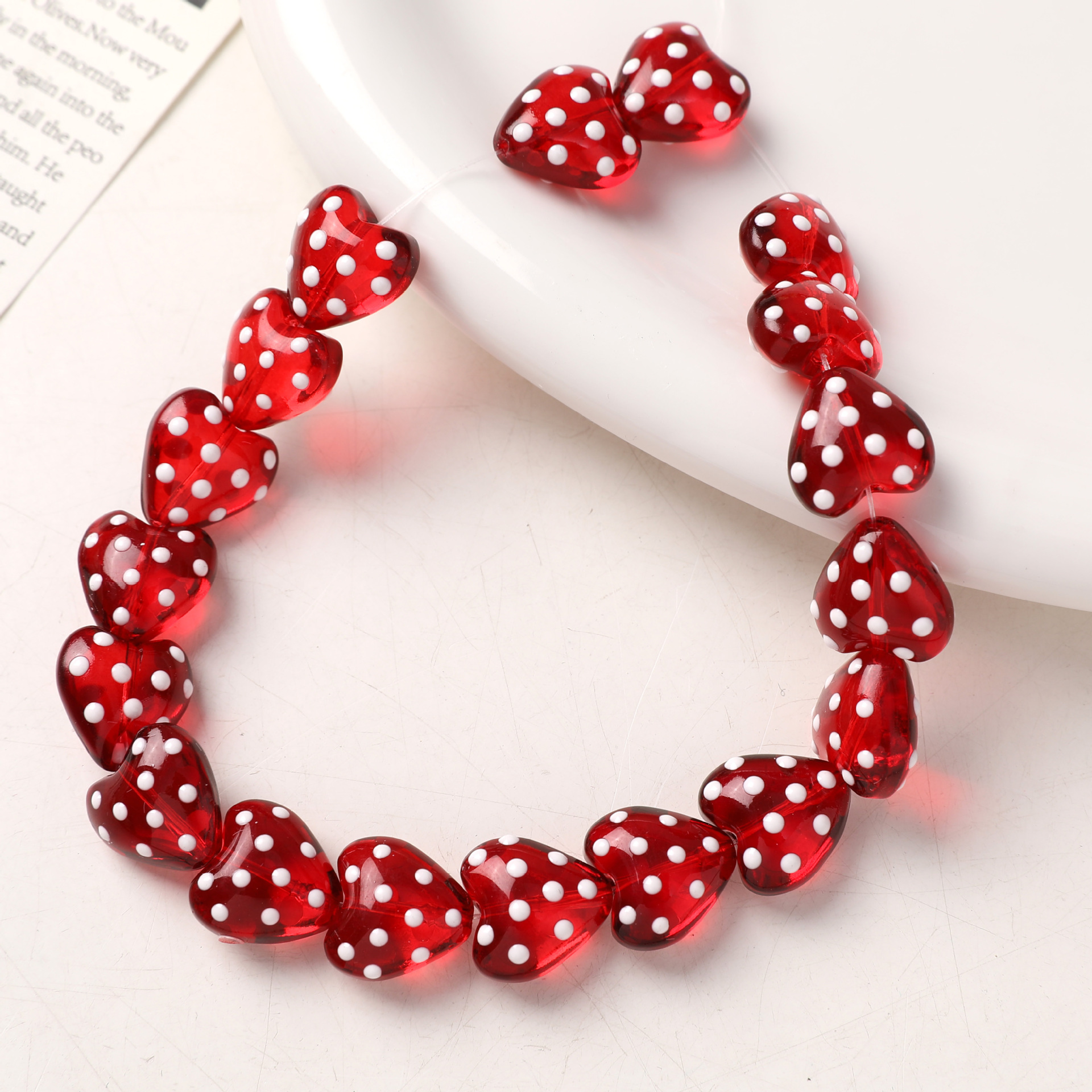 Perles murano faites à la main , chalumeau, coeur, DIY, rouge, 14x14mm, Vendu par PC