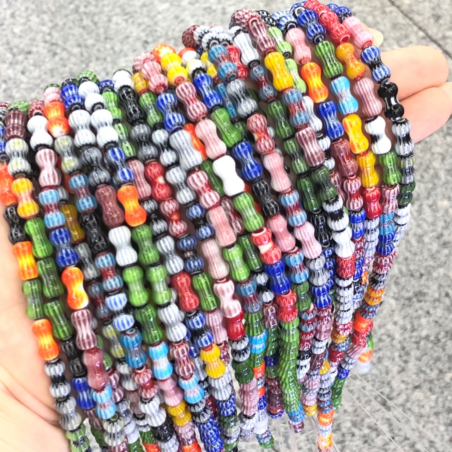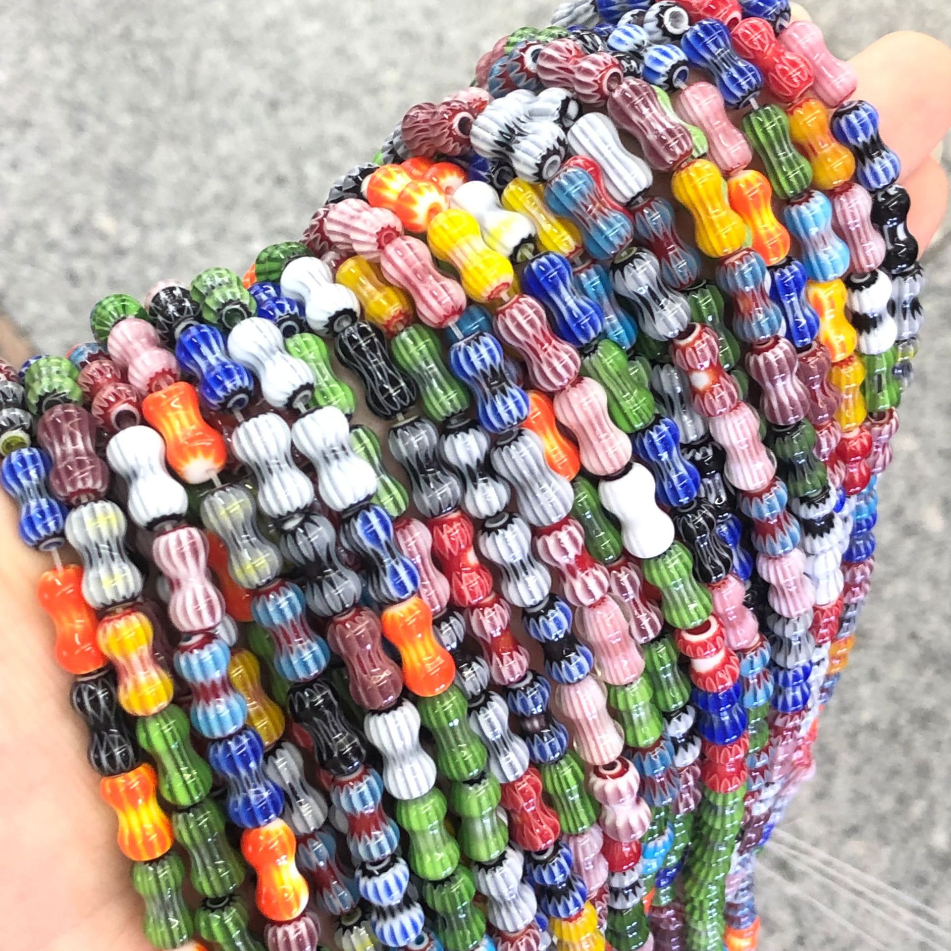 Perles murano faites à la main , chalumeau, archide, DIY, couleurs mélangées, 6x12mm, Longueur:Environ 38 cm, Vendu par brin