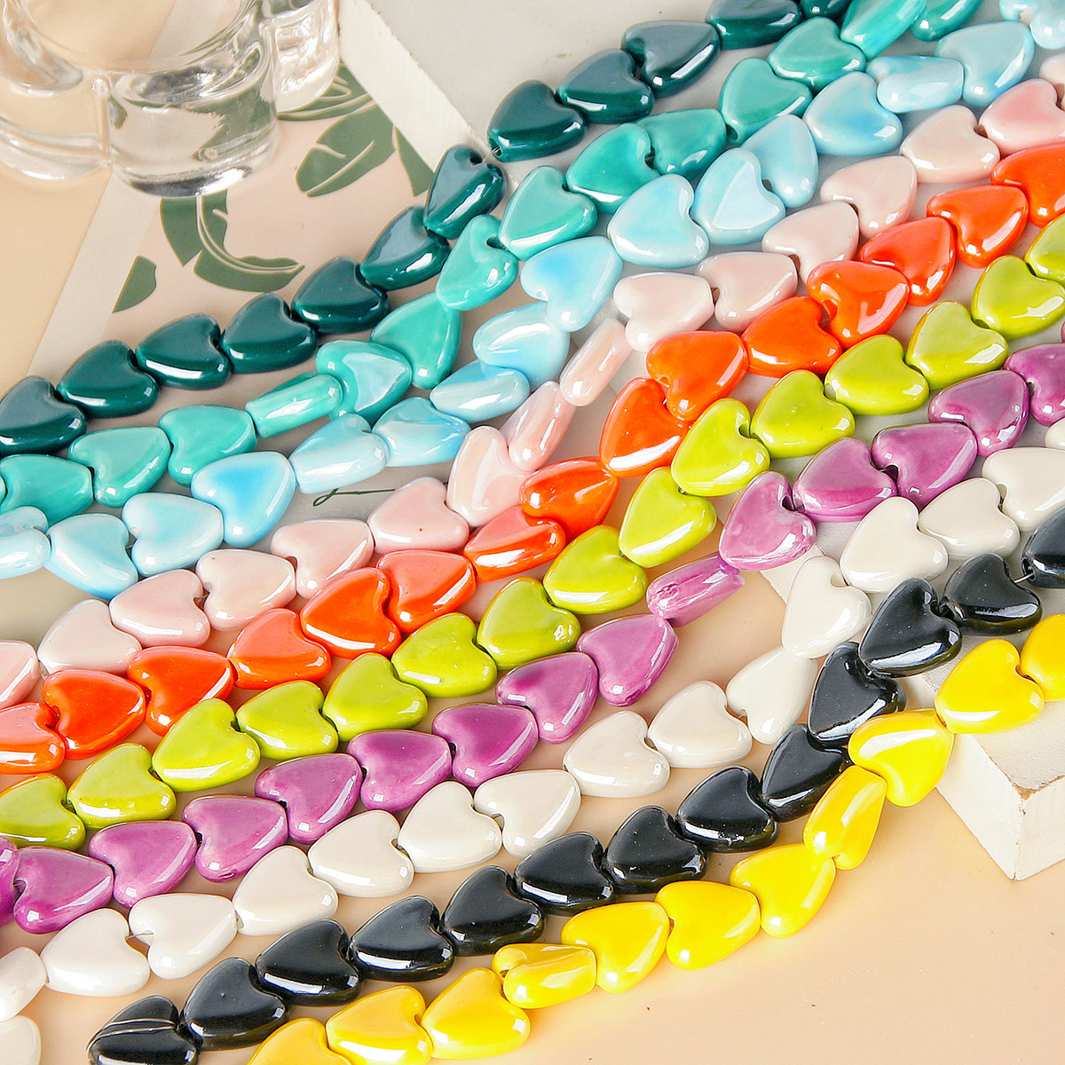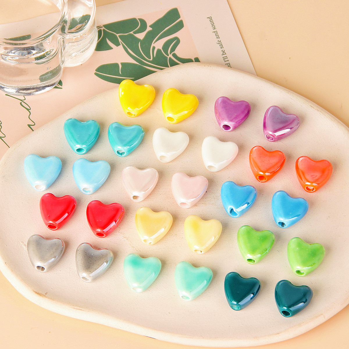 Perles nacrées en porcelaine, coeur, DIY, plus de couleurs à choisir, 15x15mm, Vendu par PC