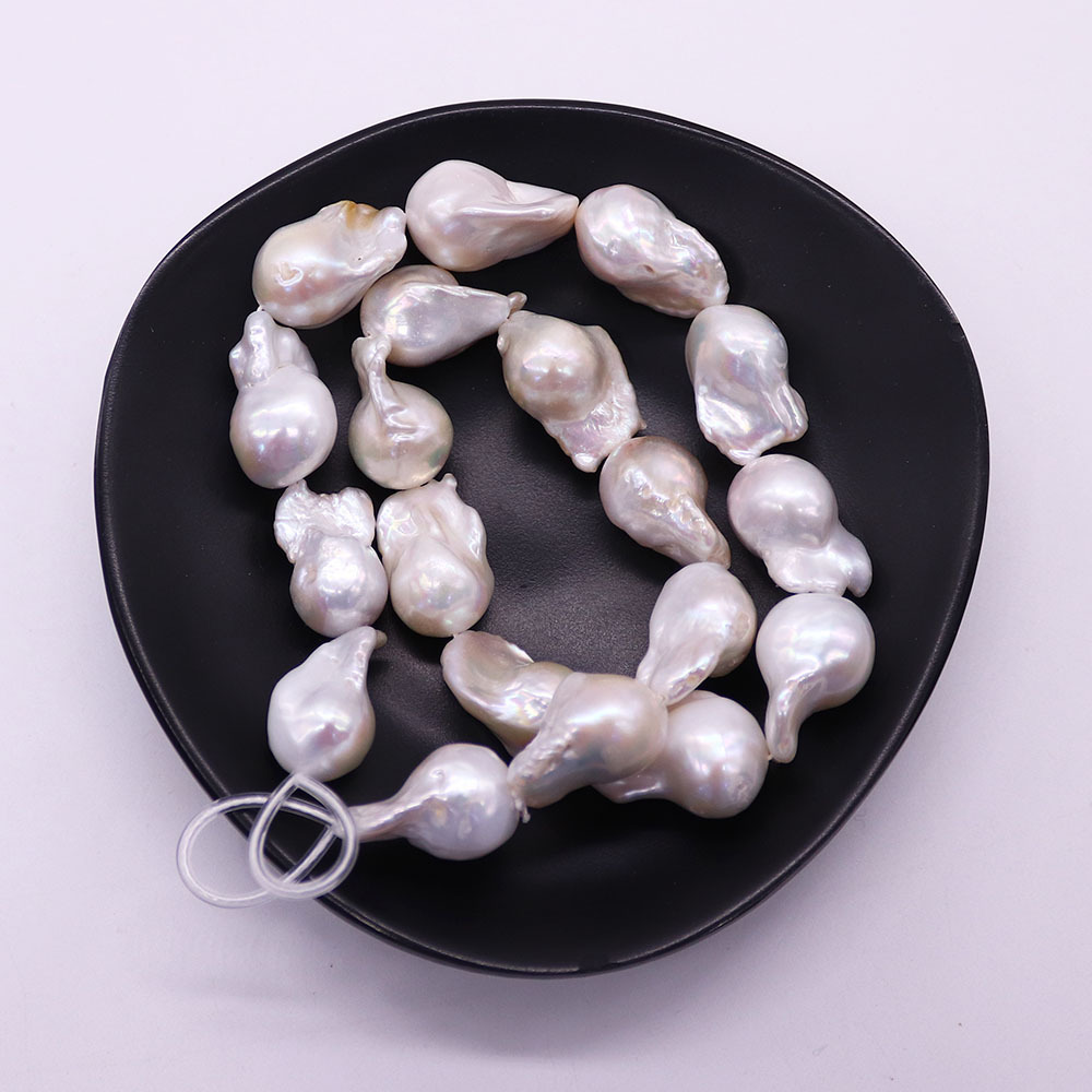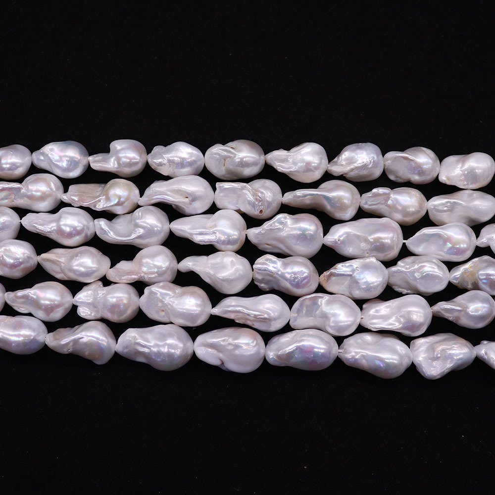 Perles nacres baroques de culture d'eau douce , perle d'eau douce cultivée, DIY, blanc, 13x15mm-18mmx28mm, Longueur:38 cm, Vendu par brin