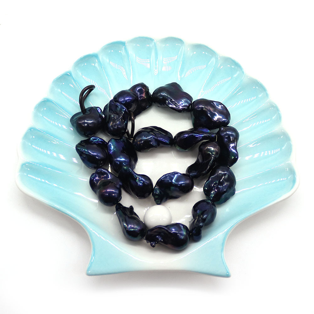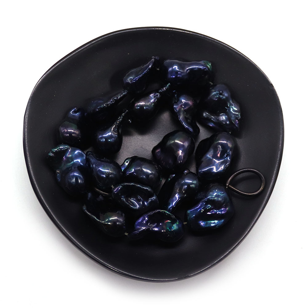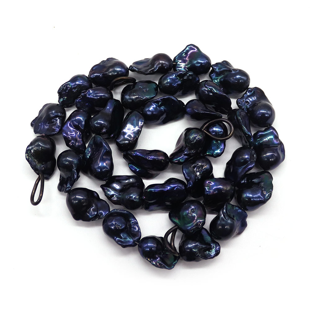 Perles nacres baroques de culture d'eau douce , perle d'eau douce cultivée, DIY, noire, 17x22mm-21x24mm, Longueur:38 cm, Vendu par brin