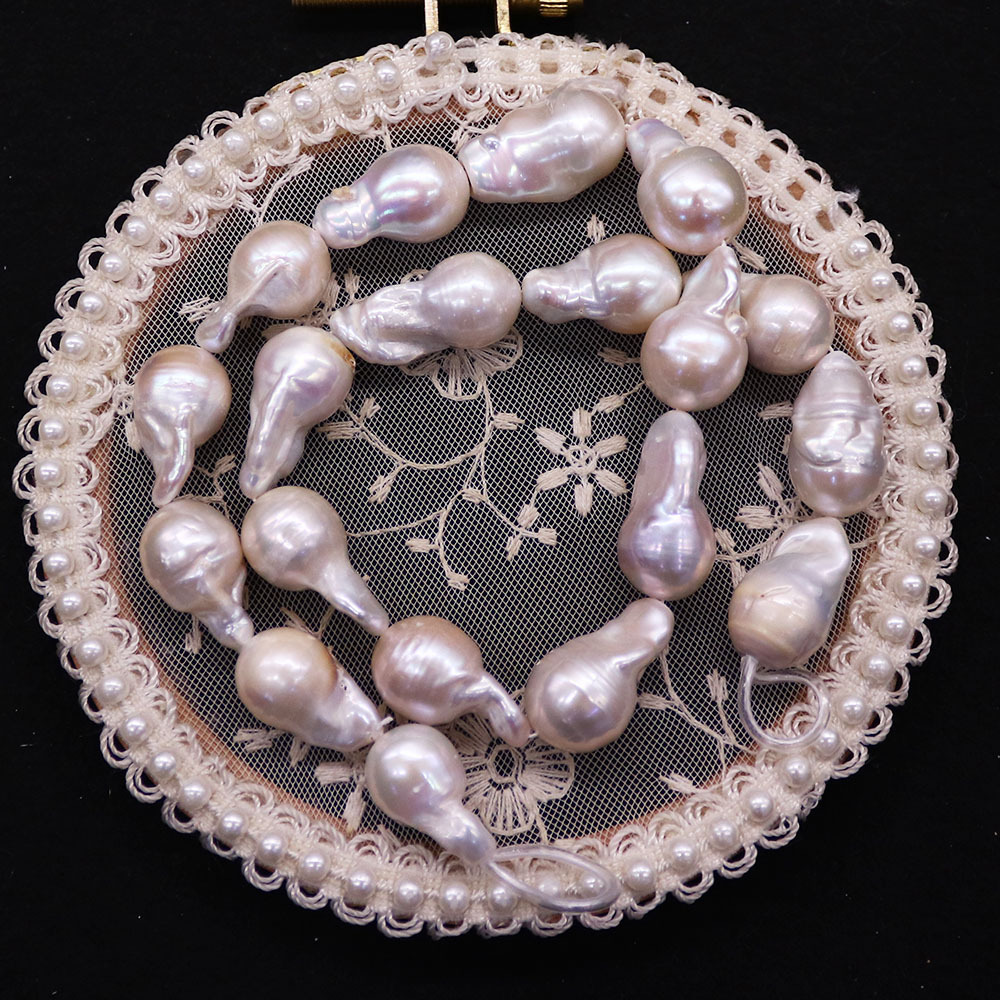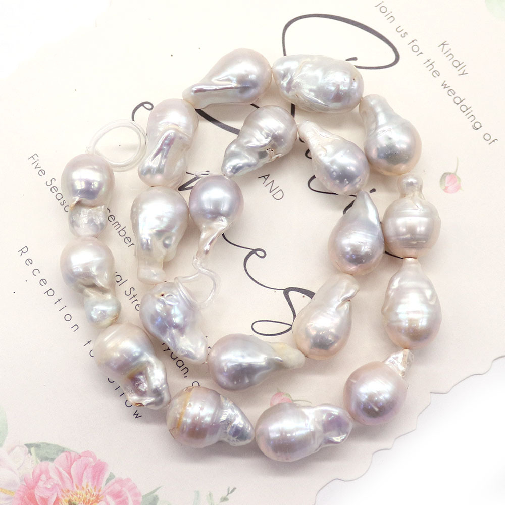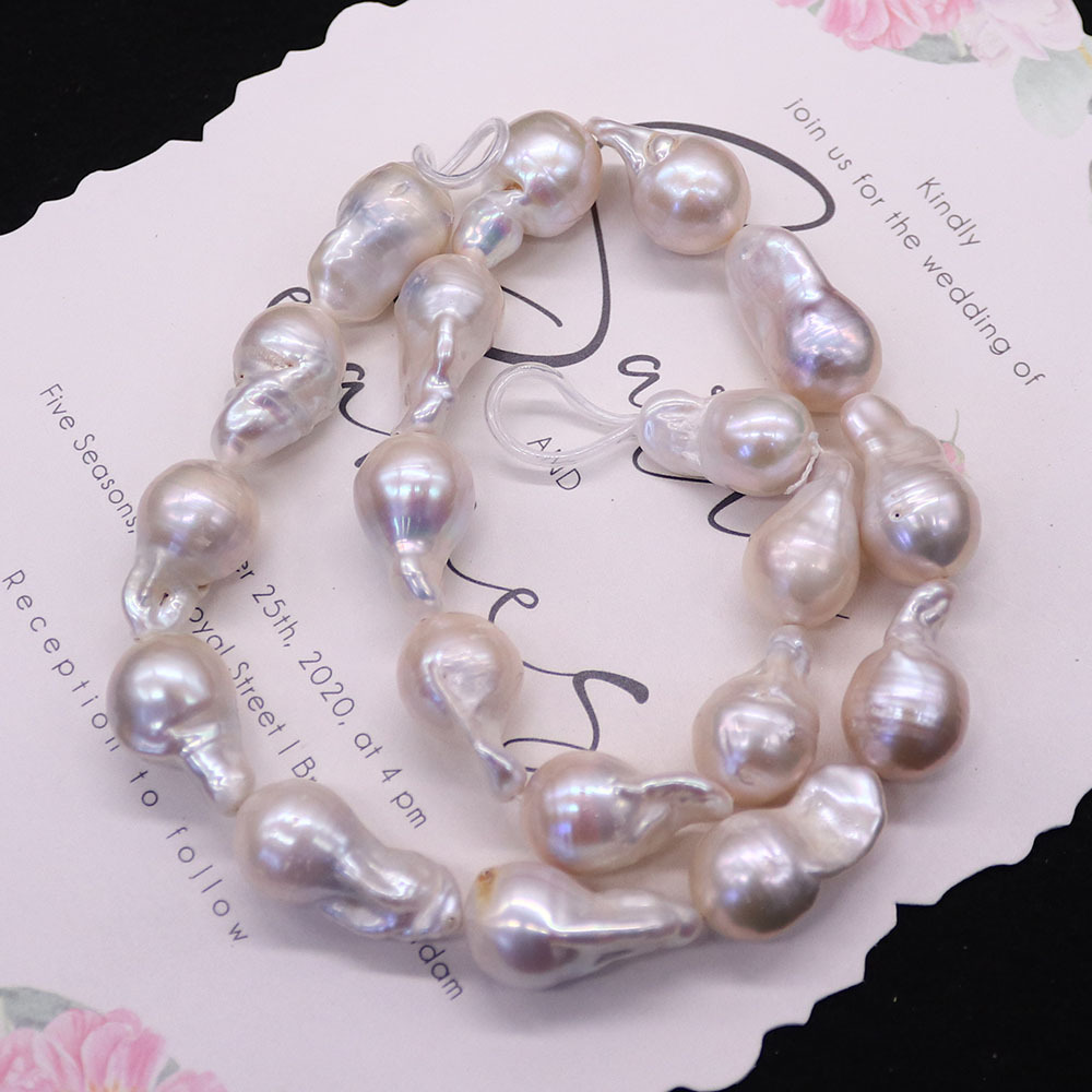 Perles nacres baroques de culture d'eau douce , perle d'eau douce cultivée, DIY, blanc, 13x20mm-15x25mm, Longueur:38 cm, Vendu par brin