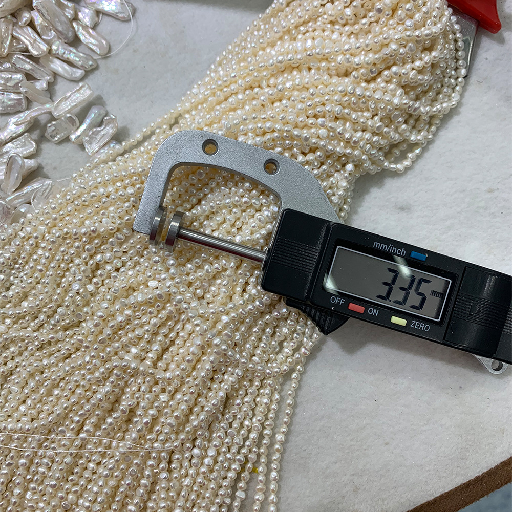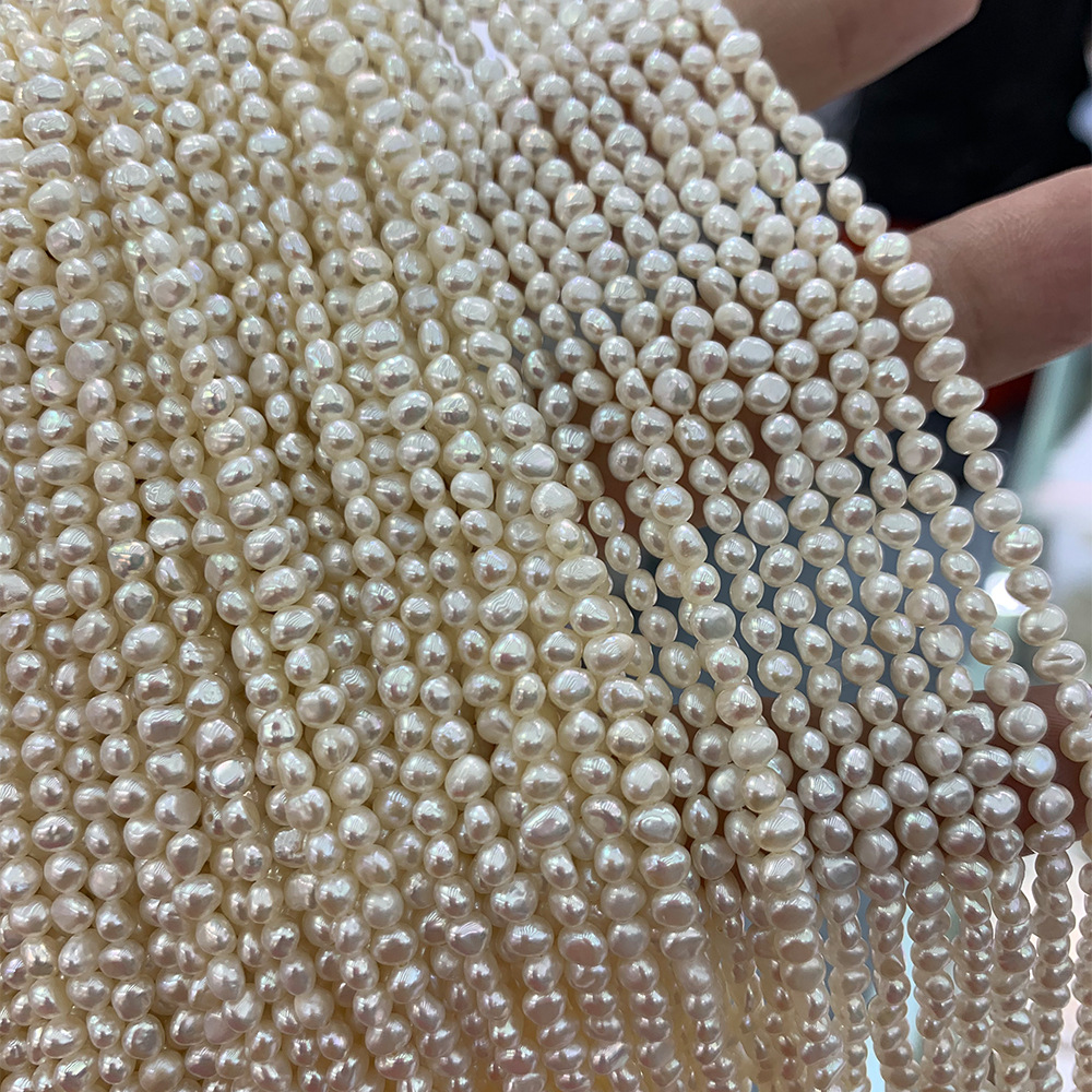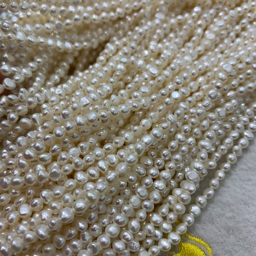 Perles nacres baroques de culture d'eau douce , perle d'eau douce cultivée, DIY, blanc, 2-3MM, Longueur:35 cm, Vendu par brin