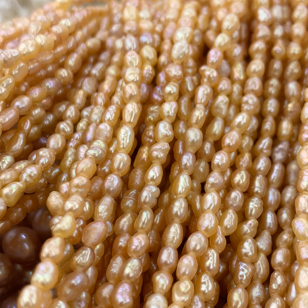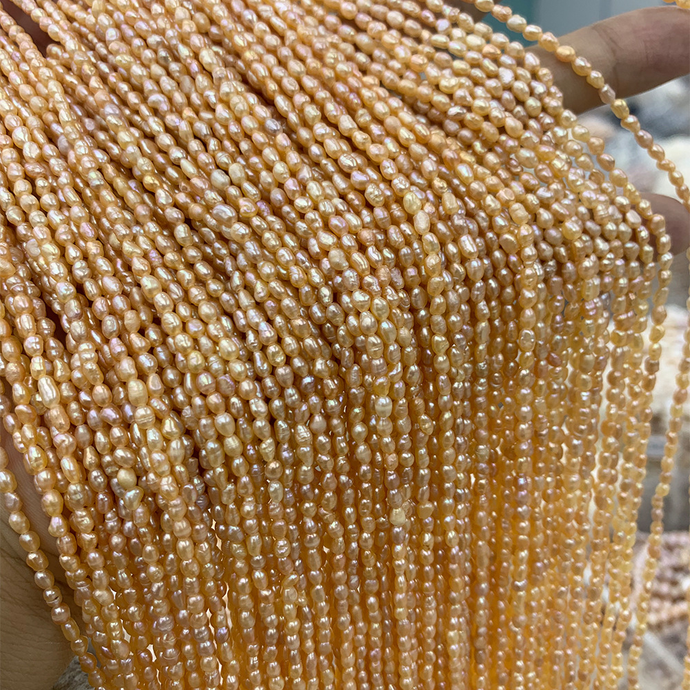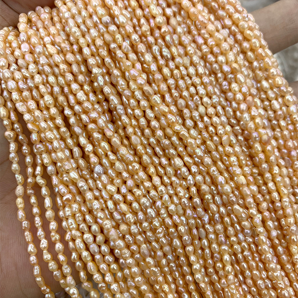Perles nacres baroques de culture d'eau douce , perle d'eau douce cultivée, DIY, Jaune, 2-3MM, Longueur:35 cm, Vendu par brin