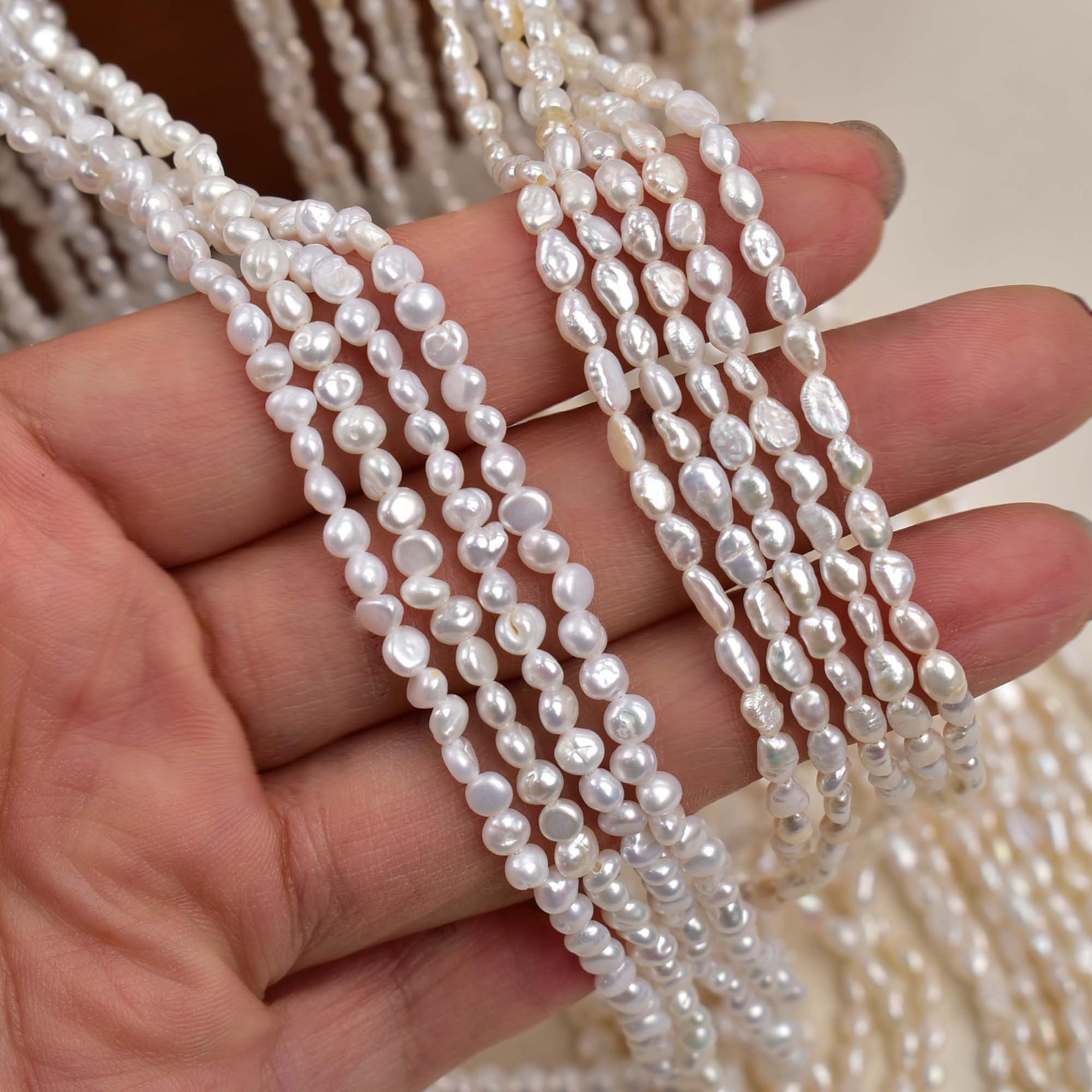 Perles nacres baroques de culture d'eau douce , perle d'eau douce cultivée, DIY, blanc, 3-4mm, Longueur:34 cm, Vendu par PC