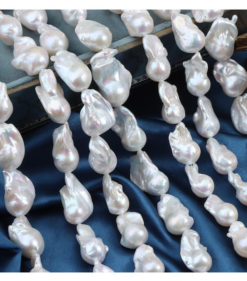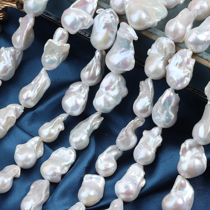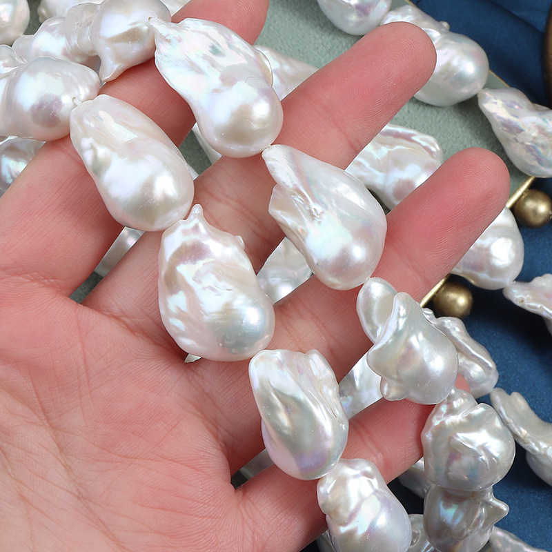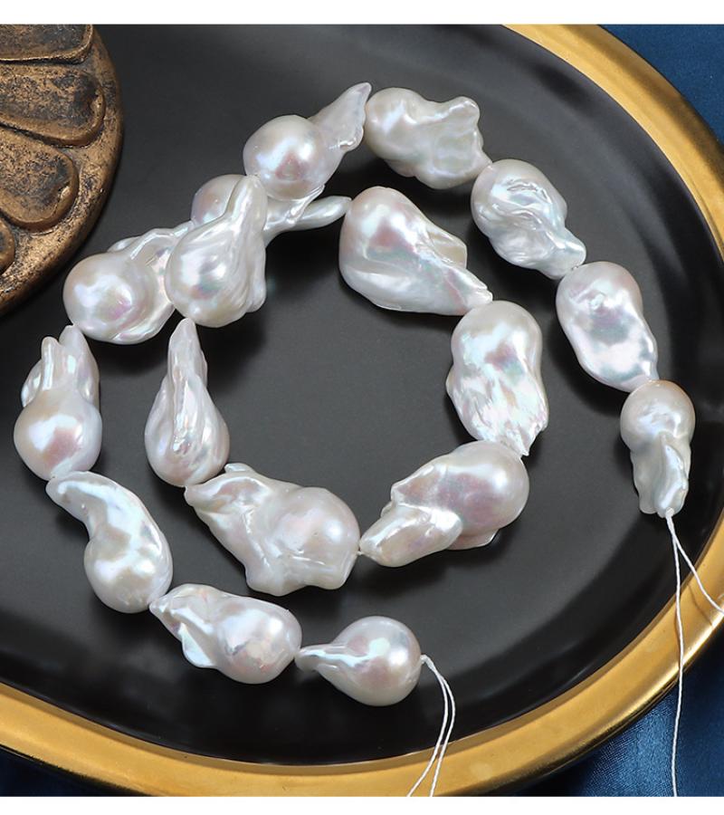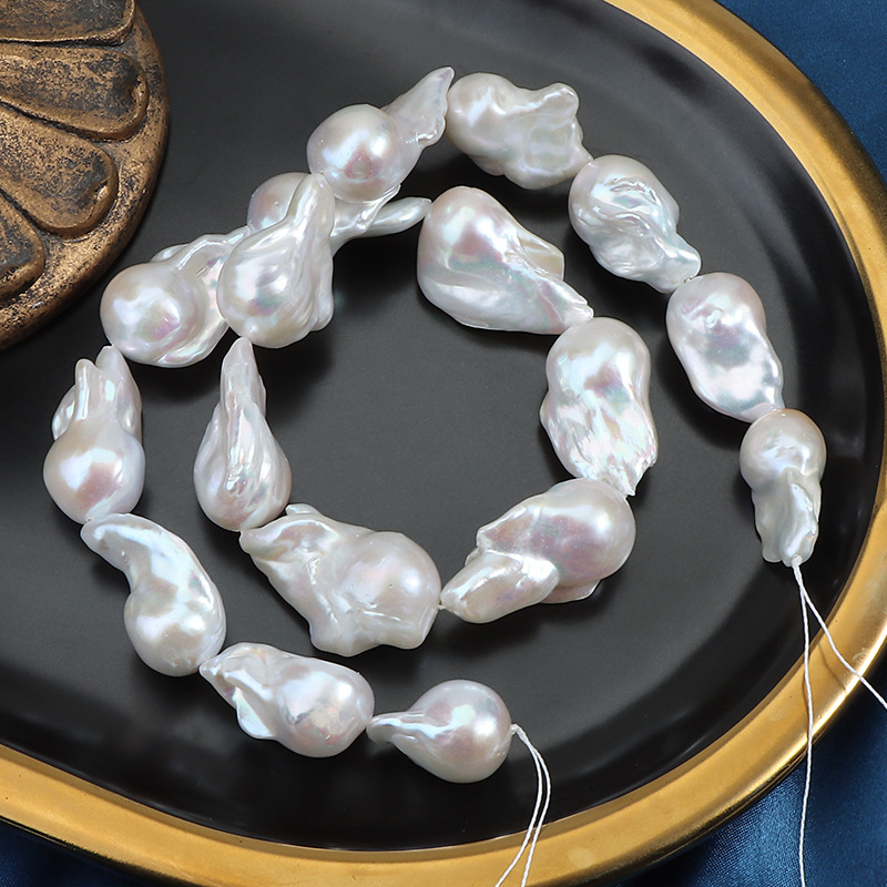 Perles nacres baroques de culture d'eau douce , perle d'eau douce cultivée, Placage, DIY, blanc, 15x20mm, Longueur:40 cm, Vendu par brin