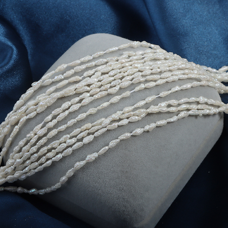Perles nacres baroques de culture d'eau douce , perle d'eau douce cultivée, DIY, blanc, 2mm, Longueur:42 cm, Vendu par brin