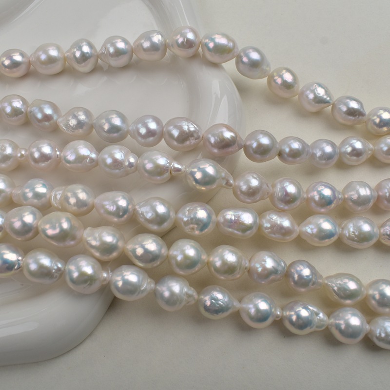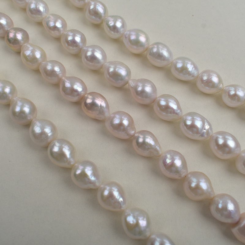Perles nacres baroques de culture d'eau douce , perle d'eau douce cultivée, DIY, blanc, 10-11mm, Longueur:40 cm, Vendu par brin